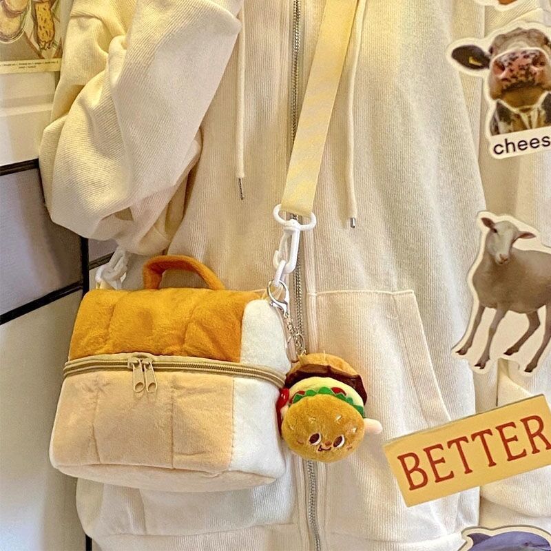 【送背带❗️吐司包化妆包】软fufu吐司造型超治愈,毛绒绒面料手感软糯,双层拉链大容量,可手提可斜挎,面包温饭盒收纳包手提袋大容量包包时尚包包QQ