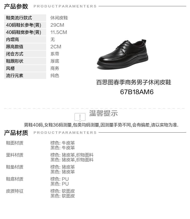 【云粉节】BF楼百思图休闲皮鞋2026春季新款简约商务通勤男鞋67B18吊牌价899,现价499