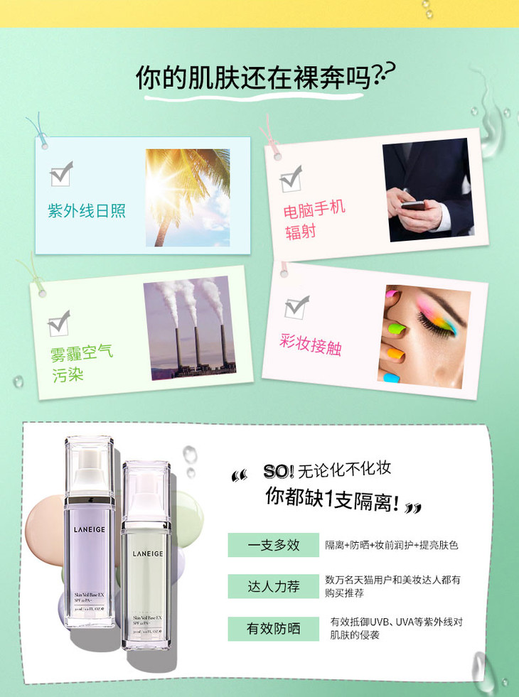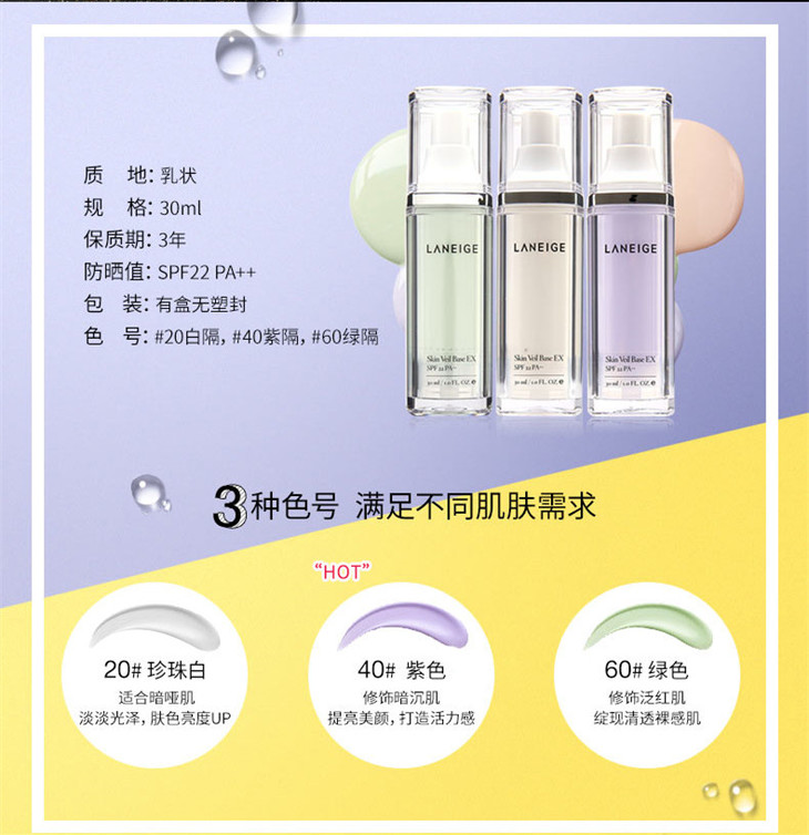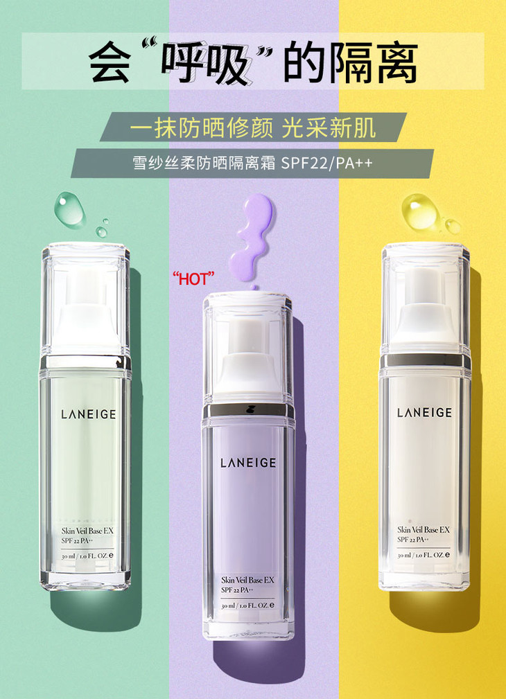 韩国 兰芝 雪纱丝柔防晒隔离霜系列