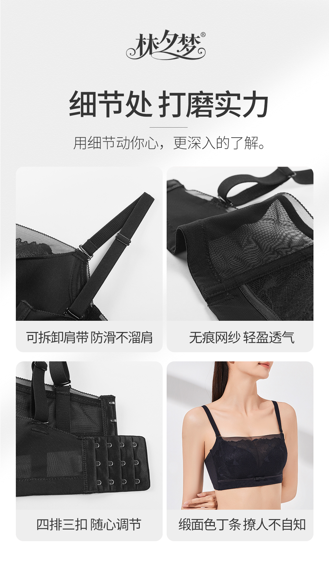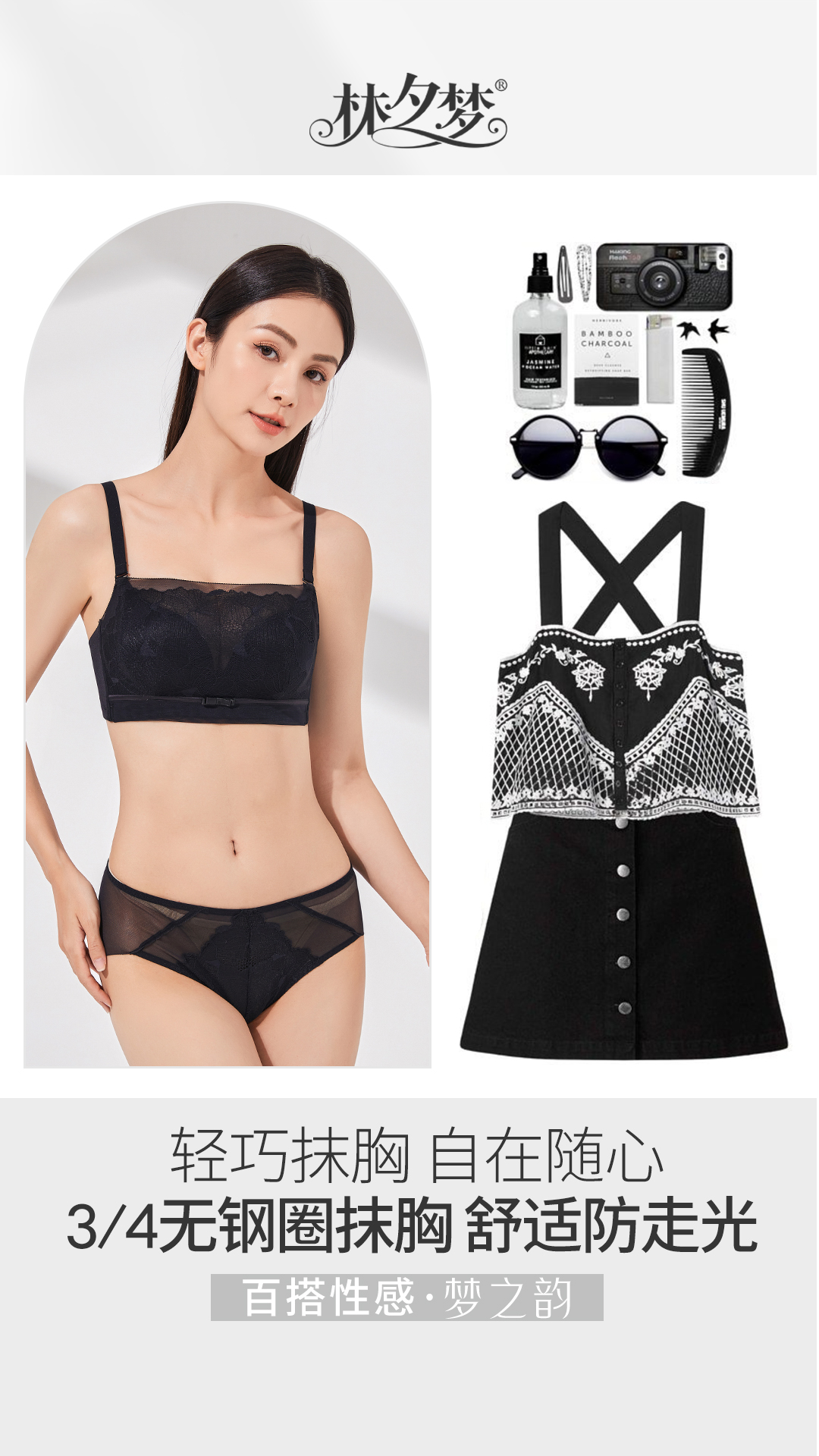【梦之韵文胸】轻巧抹胸 自在随心 精致蕾丝 高颜有型360度卷曲 柔软透气 杯里月牙托 上托防下垂 3/4无钢圈抹胸 舒适防走光_2301