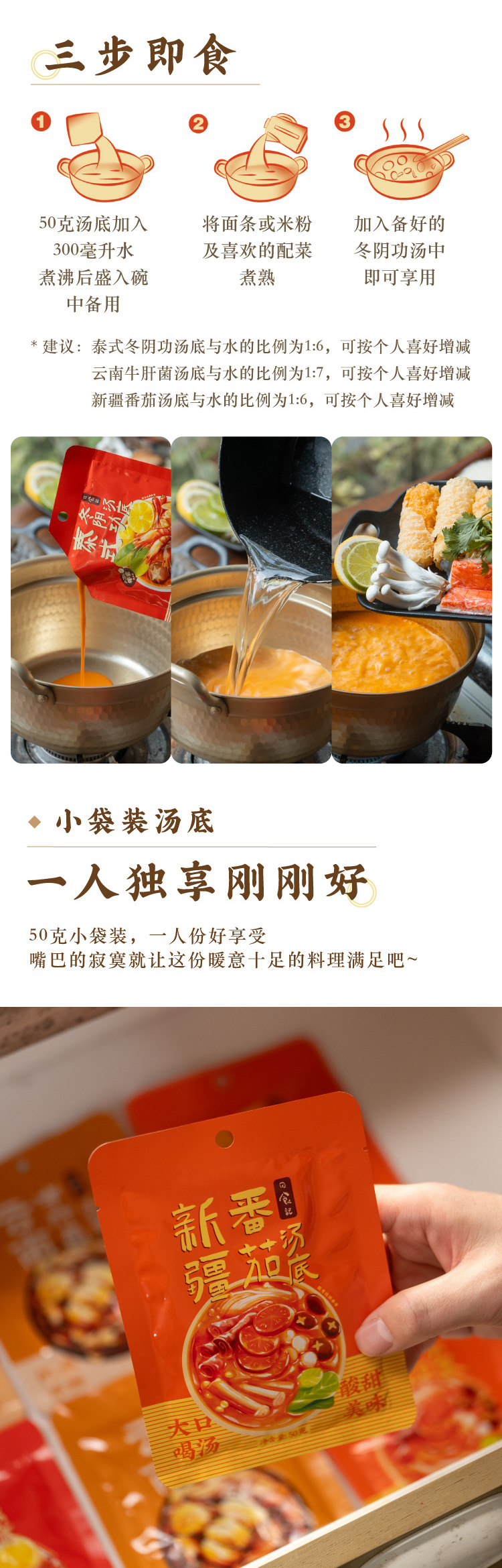 [屁侠推荐]一人食刚刚好 | 日食记 番茄汤底/冬阴功汤底/牛肝菌汤底 火锅底料 调味酱料 50g*6袋组合装