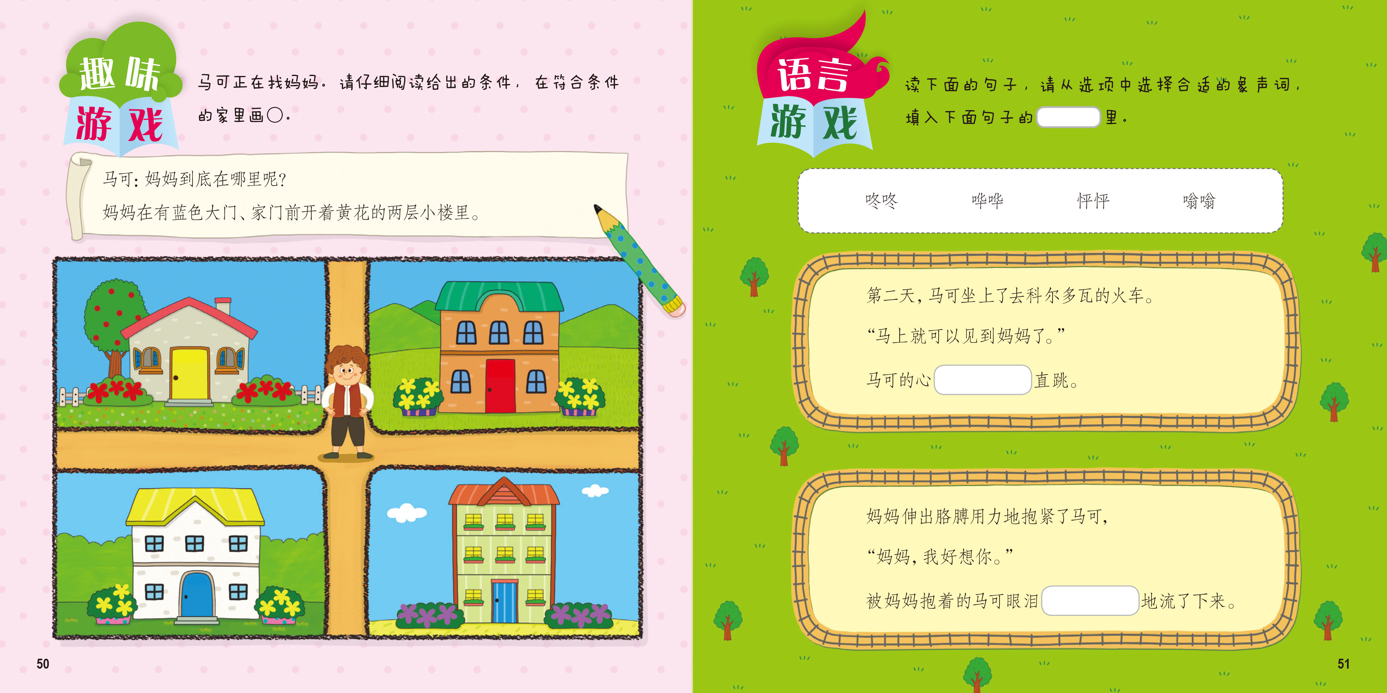 - 迷宫、寻找隐画、找碴、阶梯、找规则、排列故事顺序等