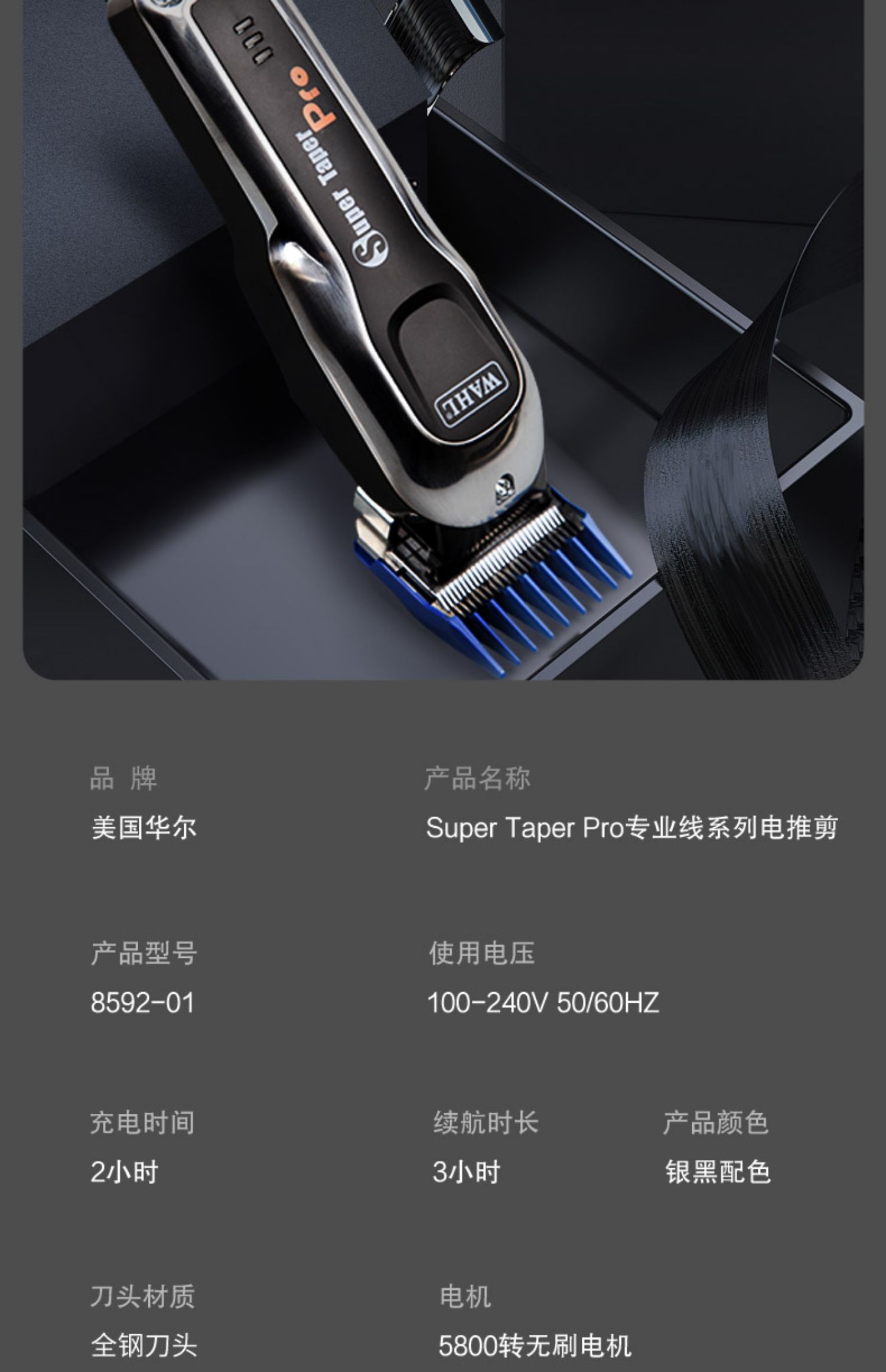 华尔WAHL 发廊专用理发器电推剪 8592-01