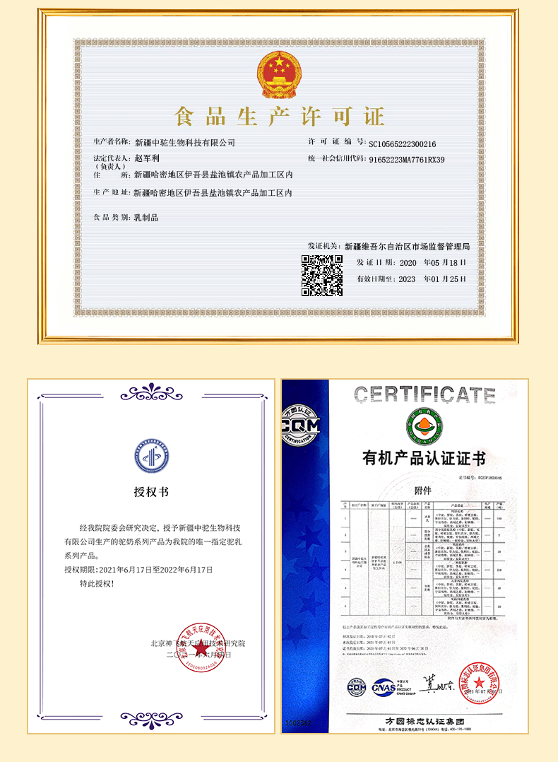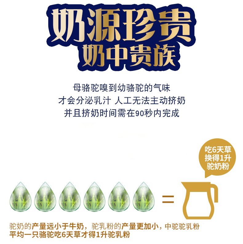 品名:新疆中驼纯驼乳粉 【有机认证】 【产地】新疆·哈密 【配料表】骆驼生鲜乳 【规格和净含量】 纯驼乳粉320g(20g*16袋) 儿童纯驼乳粉320g(20g*16袋) 初段驼乳300g(20g*15袋) 【生产日期】见罐底 【保质期】18个月 【贮存方式】在干燥。阴凉、避光条件下保存,开罐后请于一个月内食用完毕。 【生产许可证号】SC10565222300216 【执行标准】DBS65/014 【食用方法】建议一天三次,每次10g用6-8倍的温开水冲调,口味自调。 【发货地】新疆乌鲁木齐/成都双仓随机 【包装方式】快递箱 【发货时效】下单后48小时内 【物流方式】中通/圆通/京东/顺丰快递随机不接受指定 【不发货区域】西藏,县级以下村镇地址如下单则不保时效,破损不售后 |