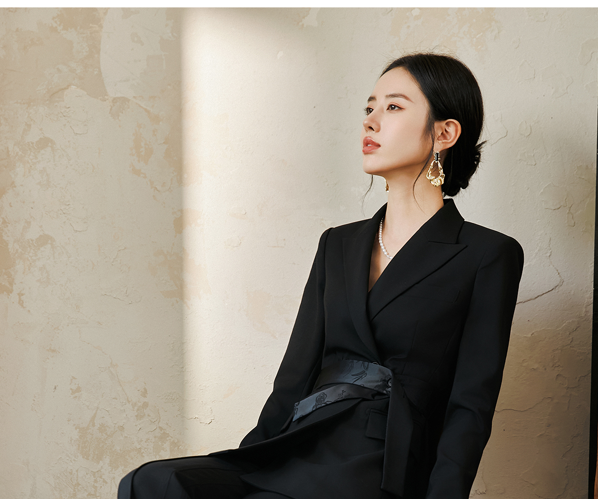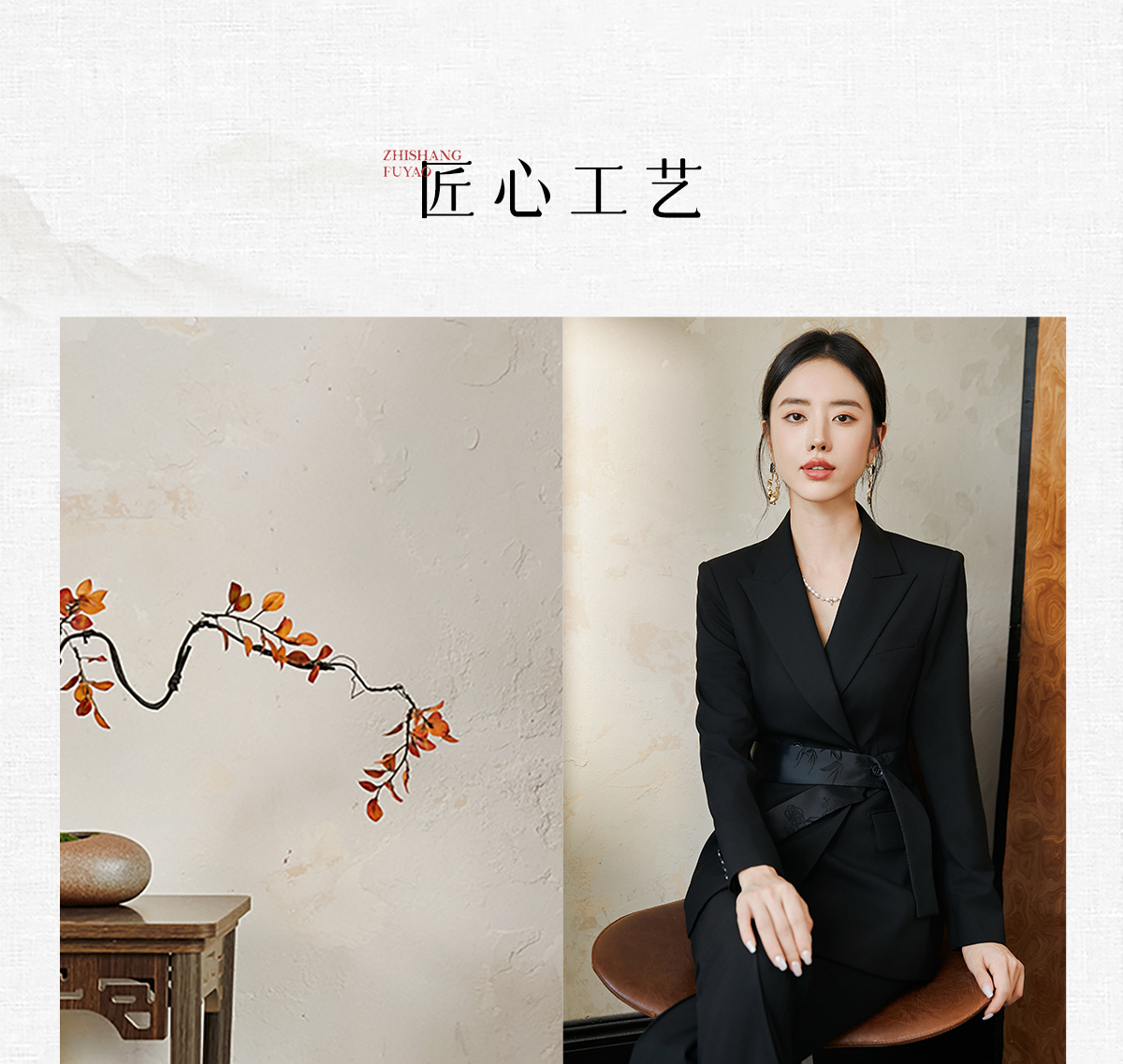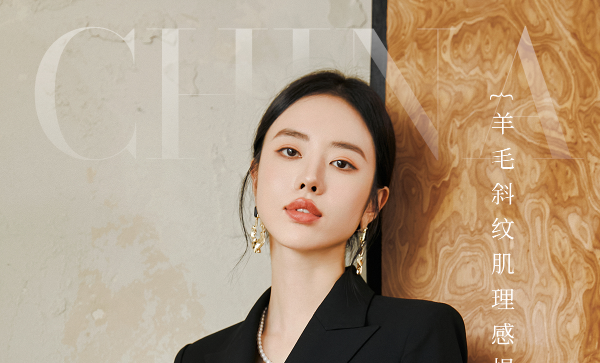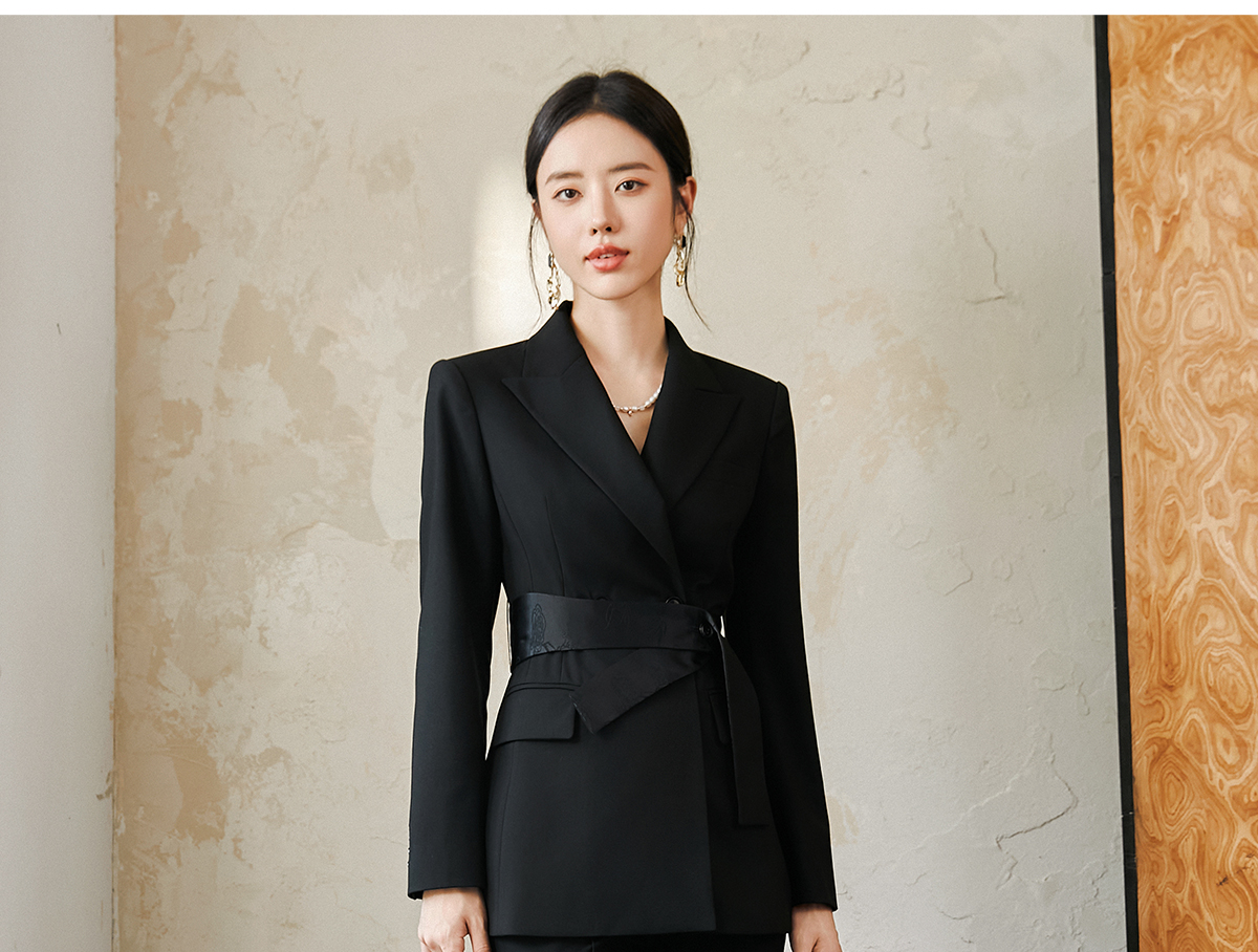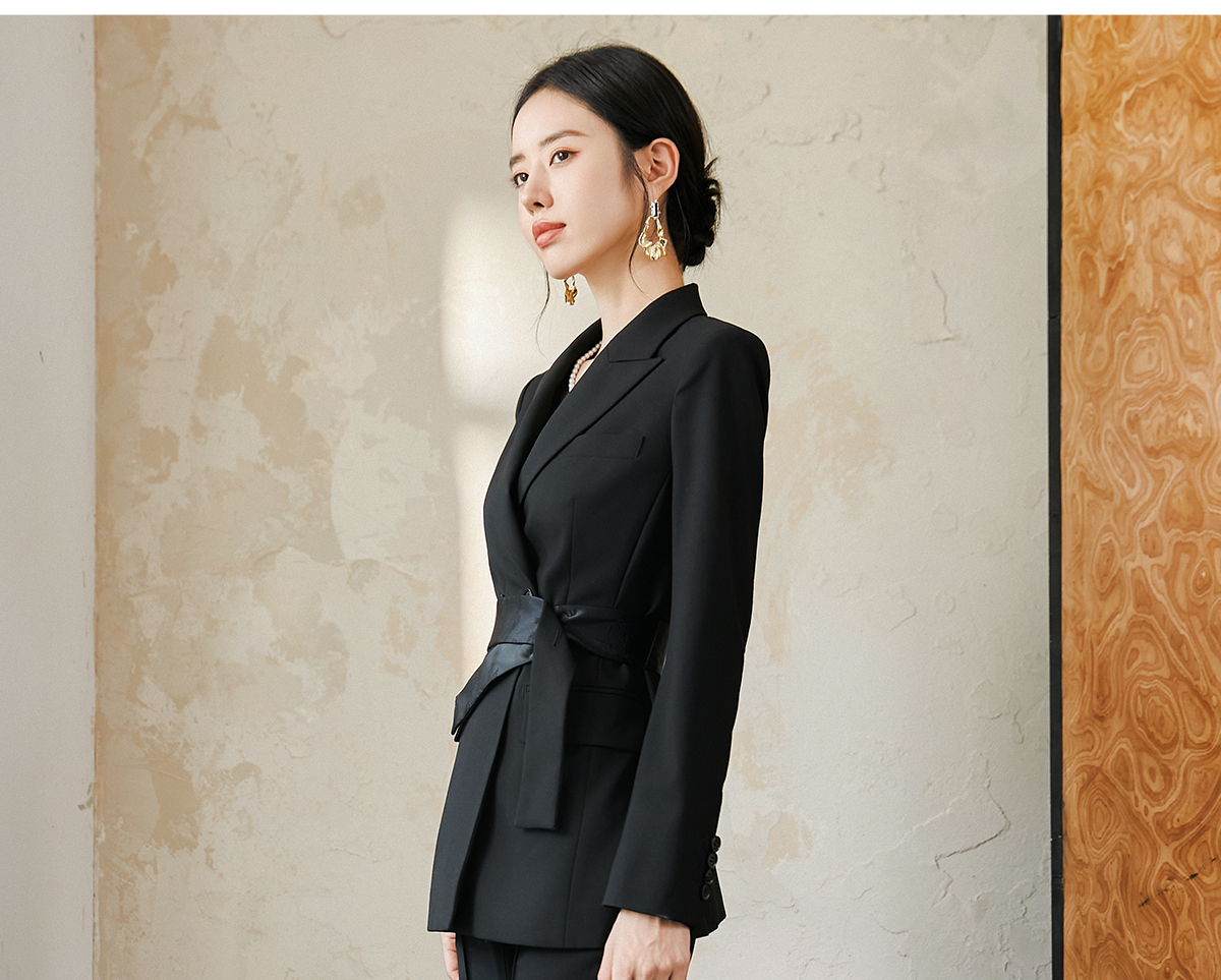 FUYAO扶摇 羊毛戗驳领西装外套女2024秋冬斜纹肌理感提花拼接西服