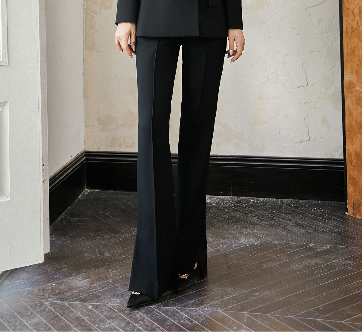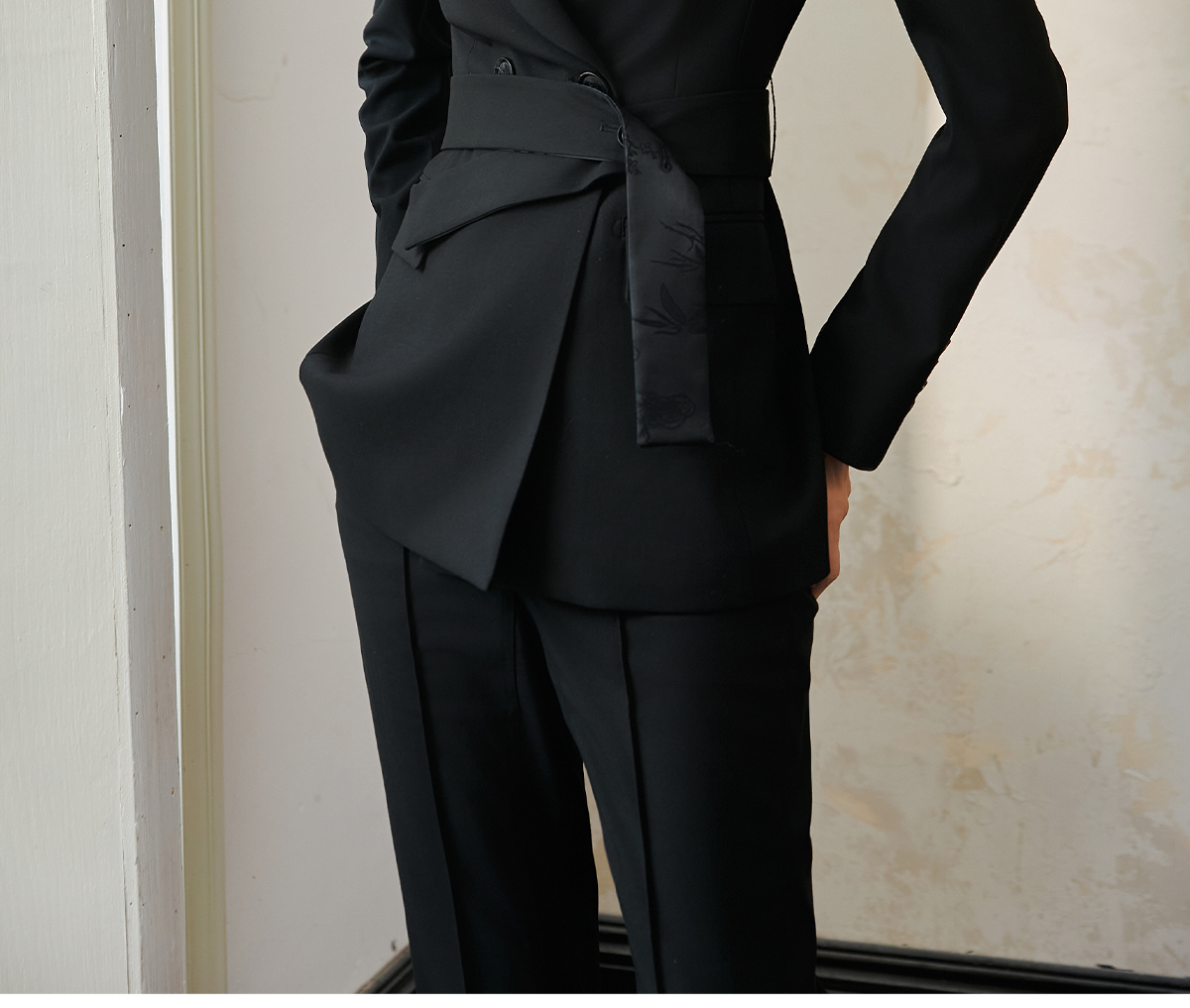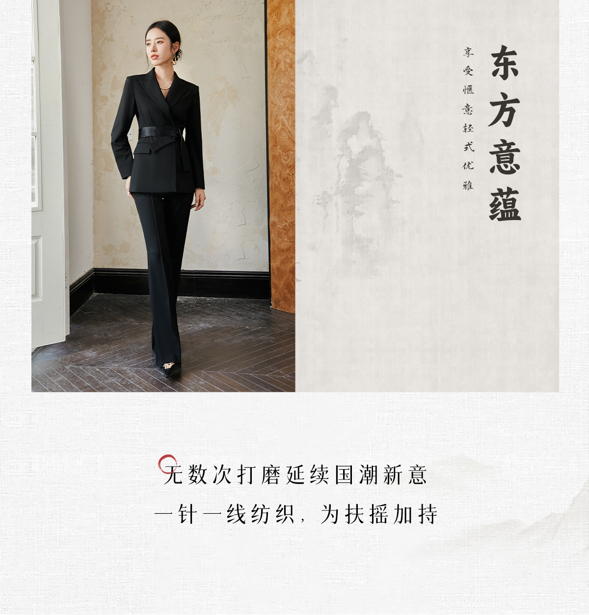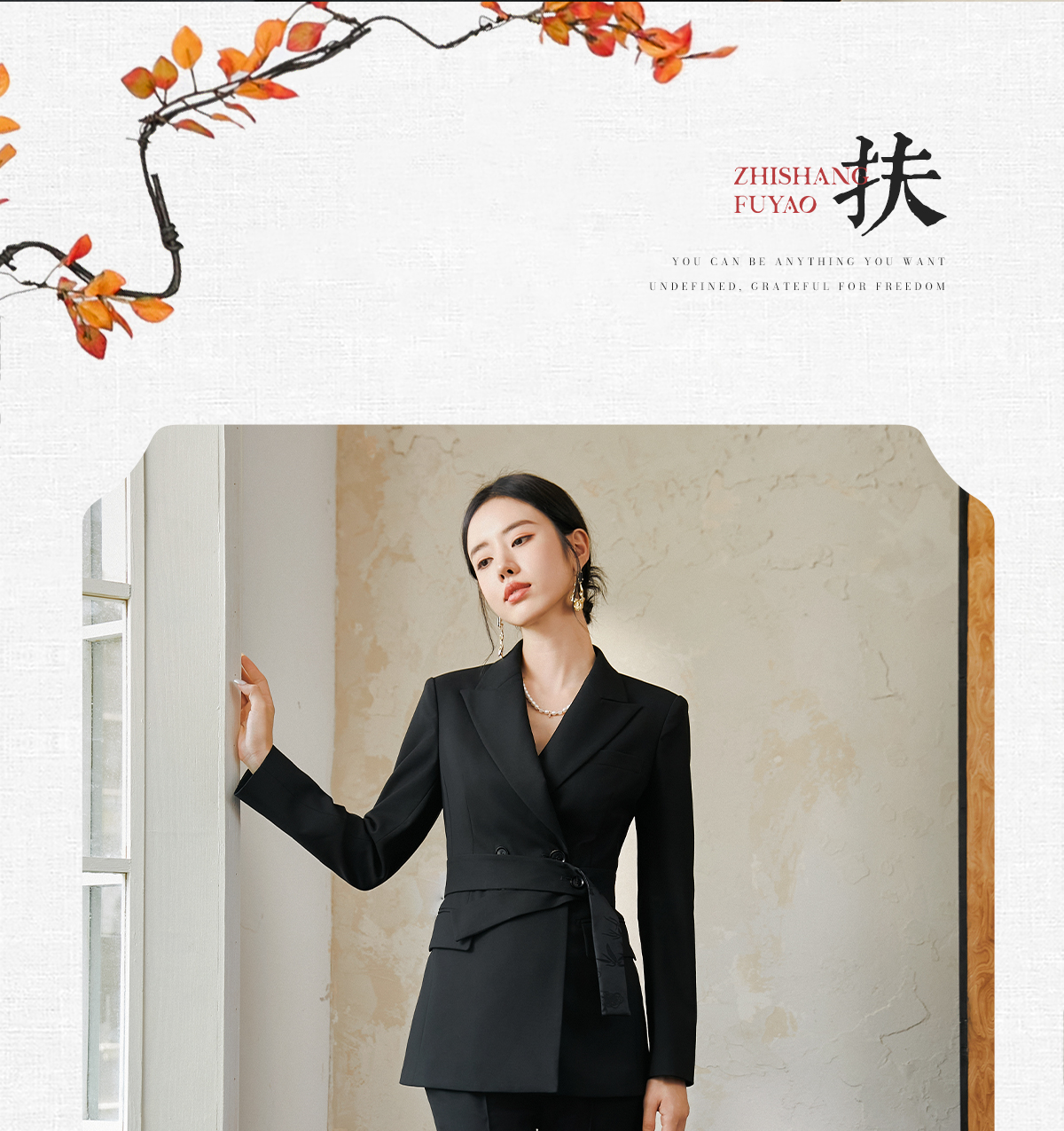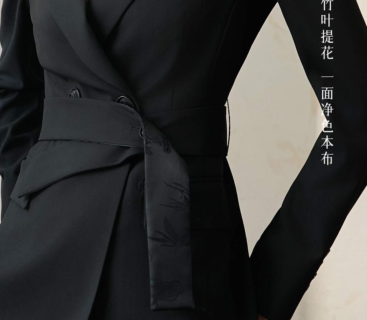 FUYAO扶摇 羊毛戗驳领西装外套女2024秋冬斜纹肌理感提花拼接西服