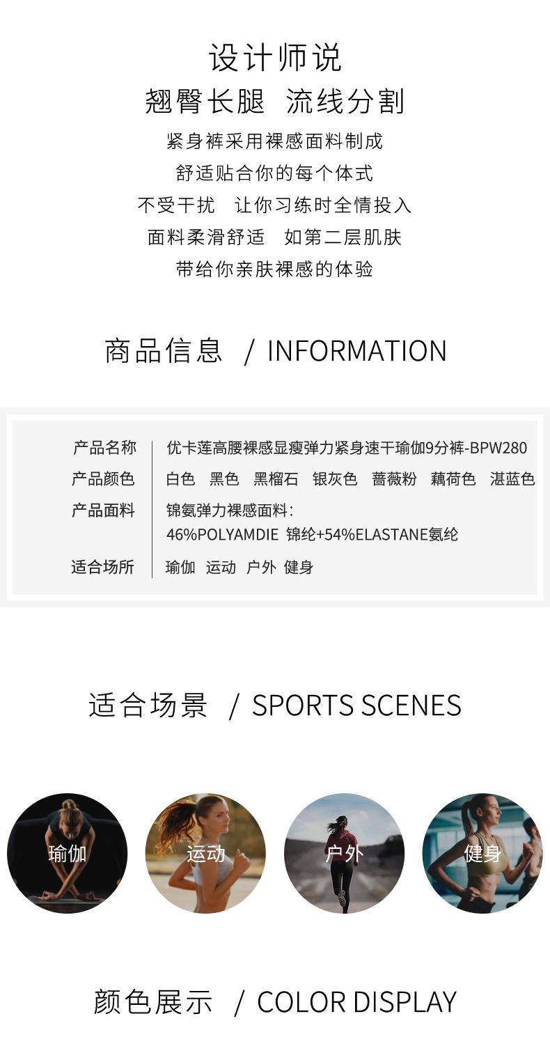 优卡莲瑜伽长裤女BPW280高腰裸感显瘦弹力跑步健身速干运动九分裤