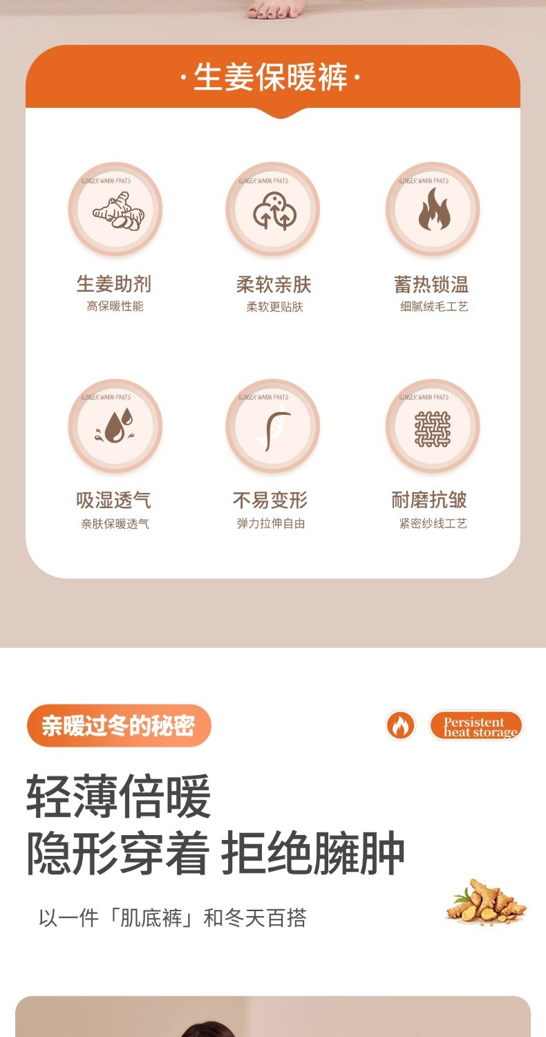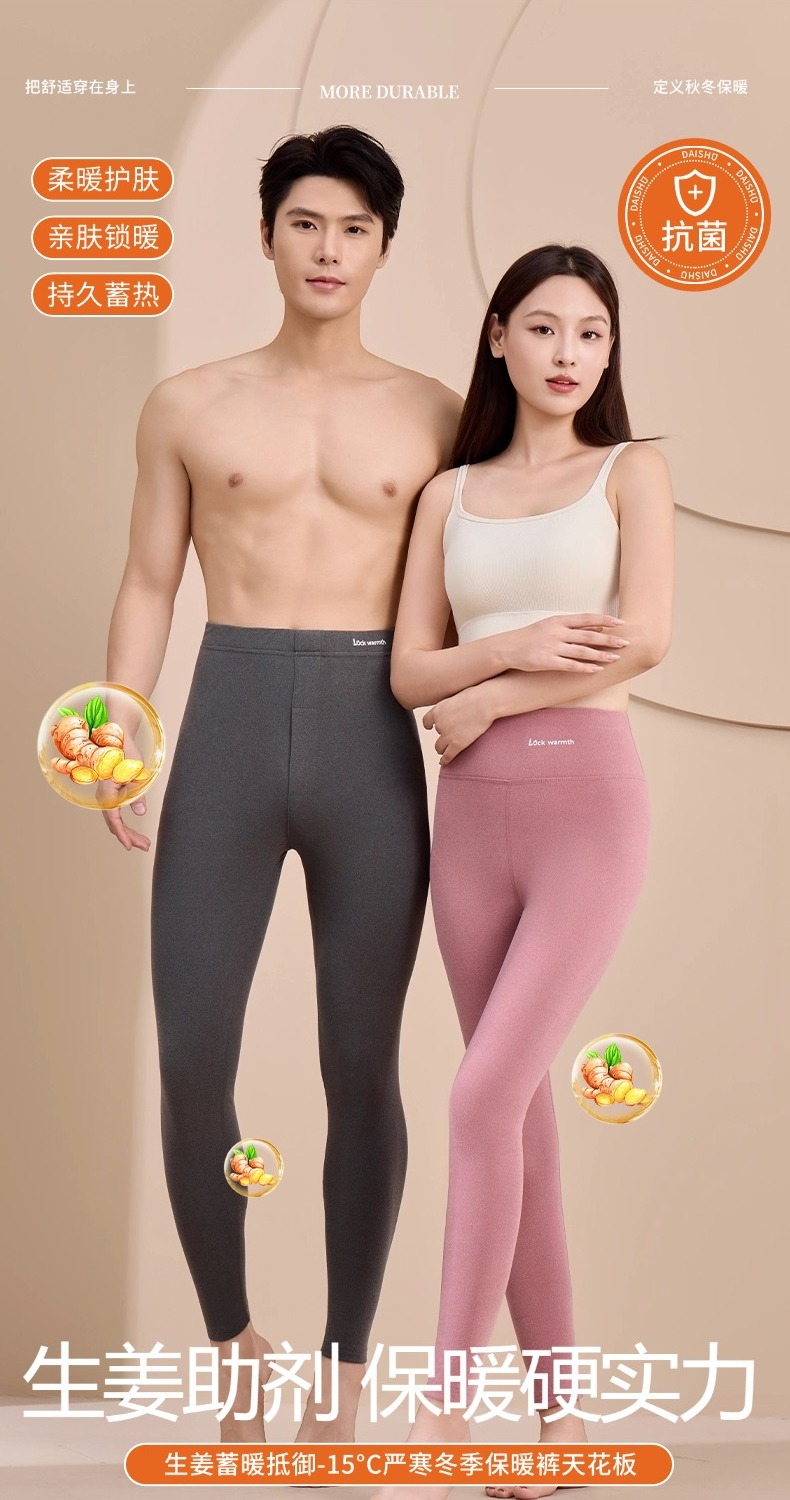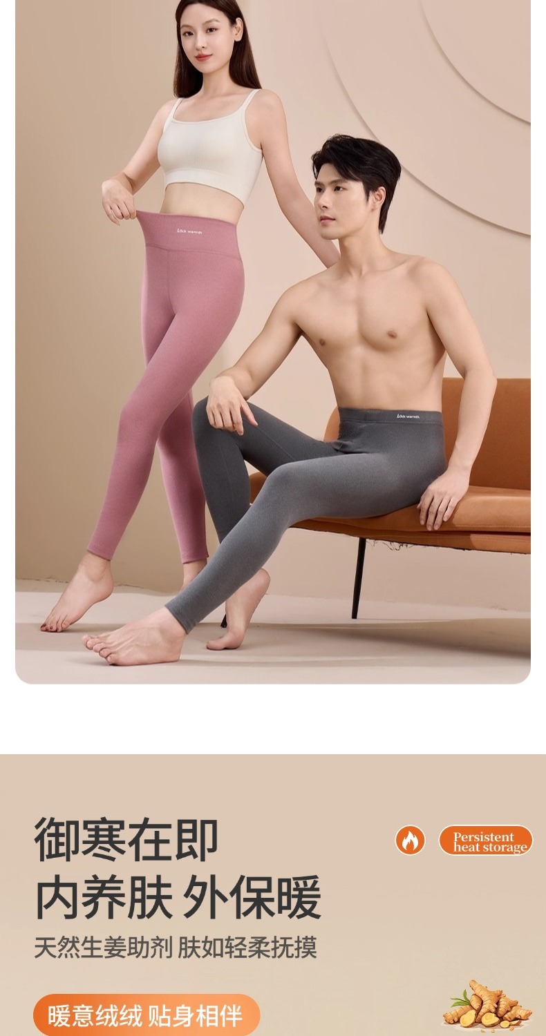 【生姜精华❗️10A抗菌温暖蓄热保暖裤】云般绵柔亲肤,御寒在即,内养肤,外保暖!秋冬女士高腰双面磨绒保暖秋裤 情侣修身内穿加绒打底