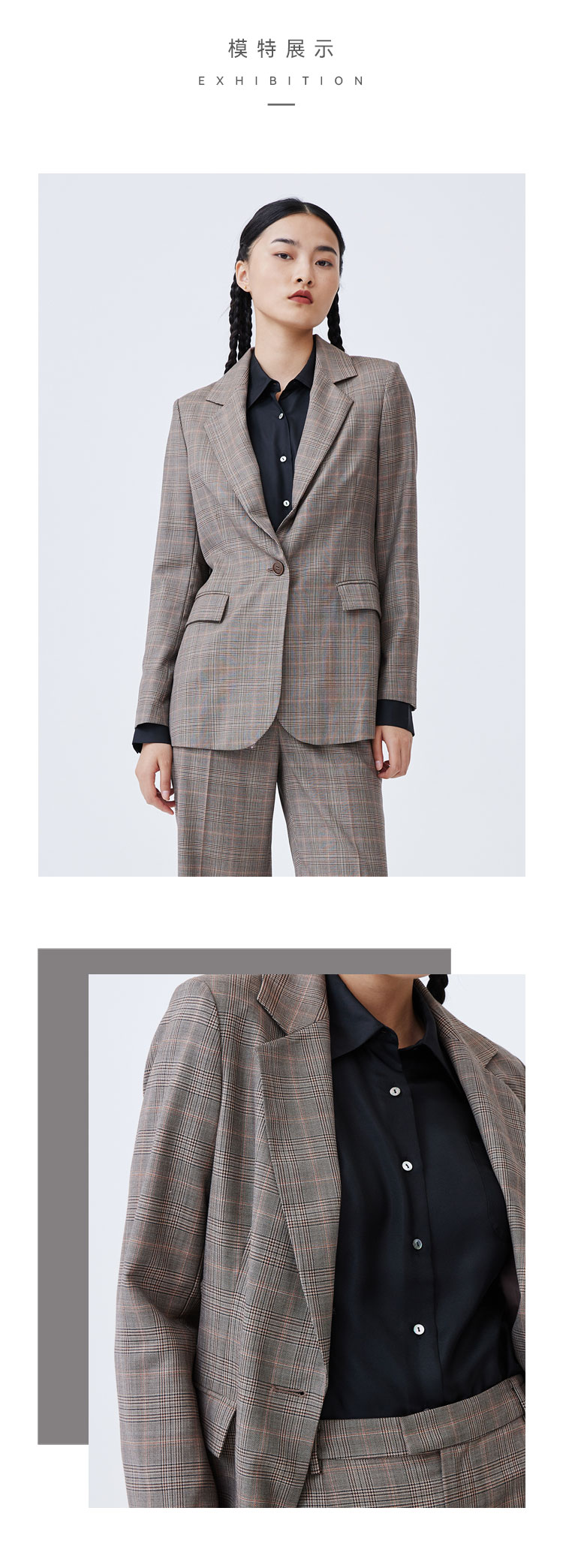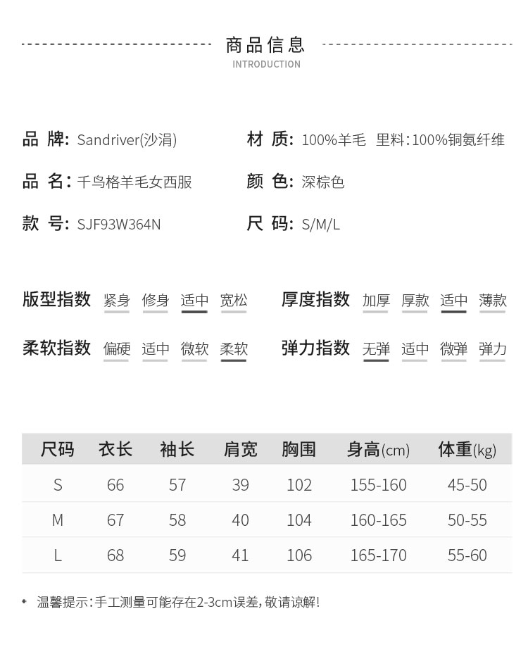 千鸟格羊毛女西服 SJF93W364N