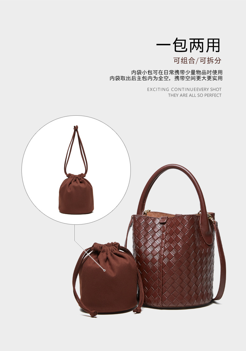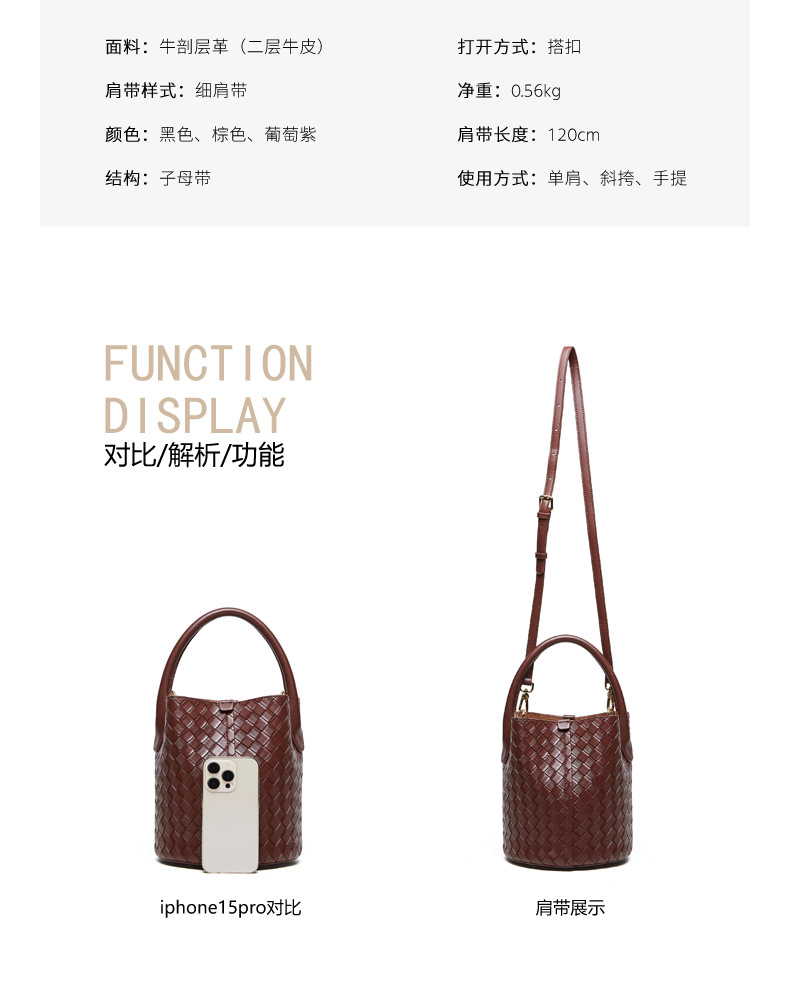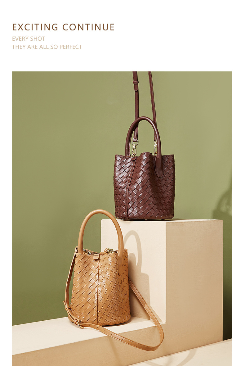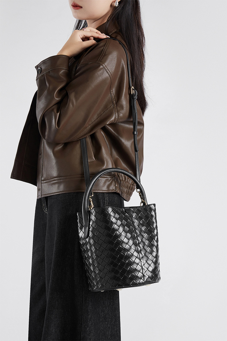 【预售3天】质感通勤女包百搭编织水桶包单肩手提包D3026