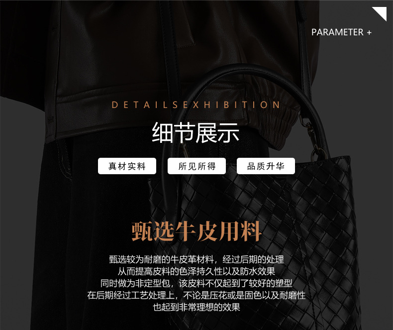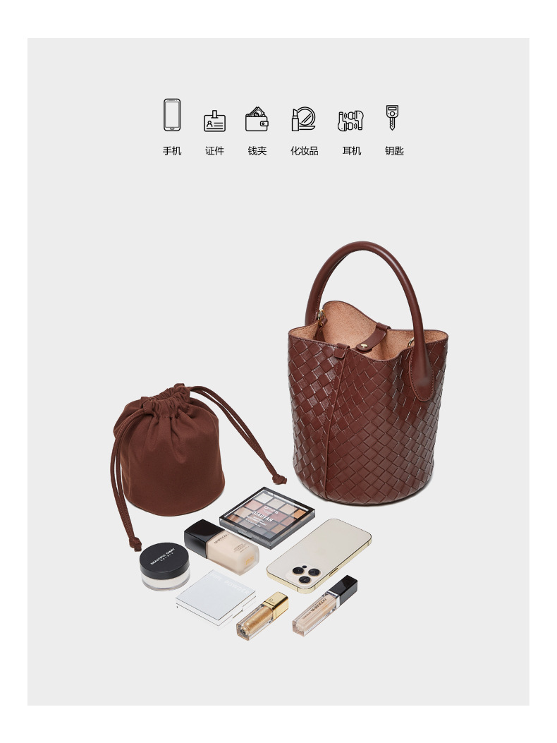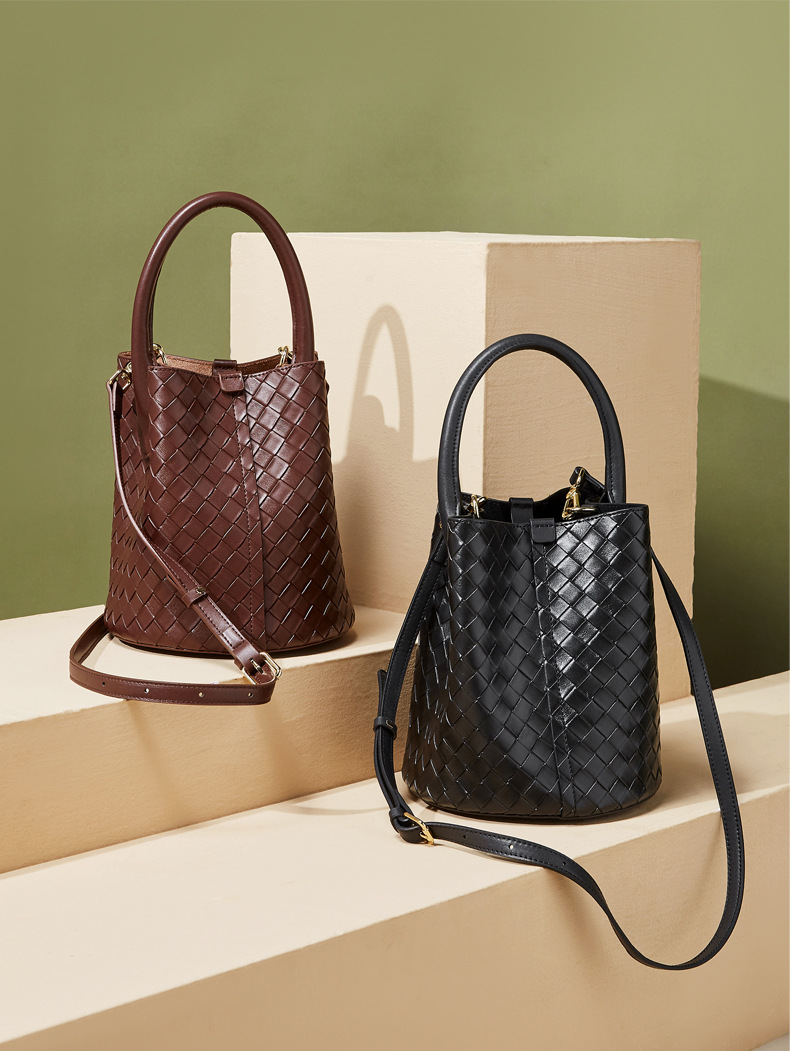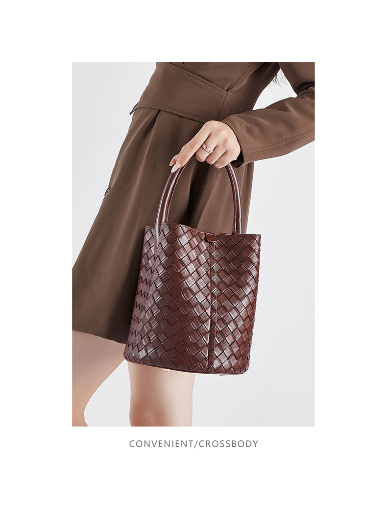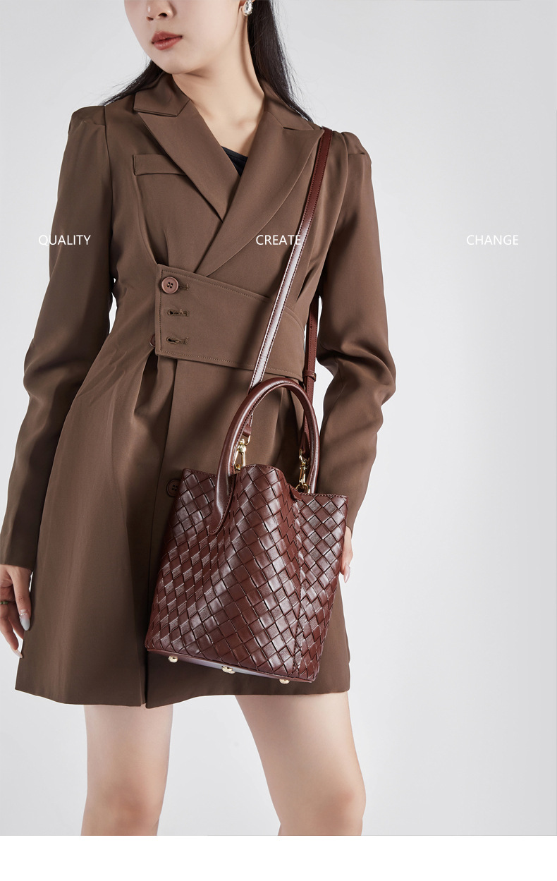 【预售3天】质感通勤女包百搭编织水桶包单肩手提包D3026