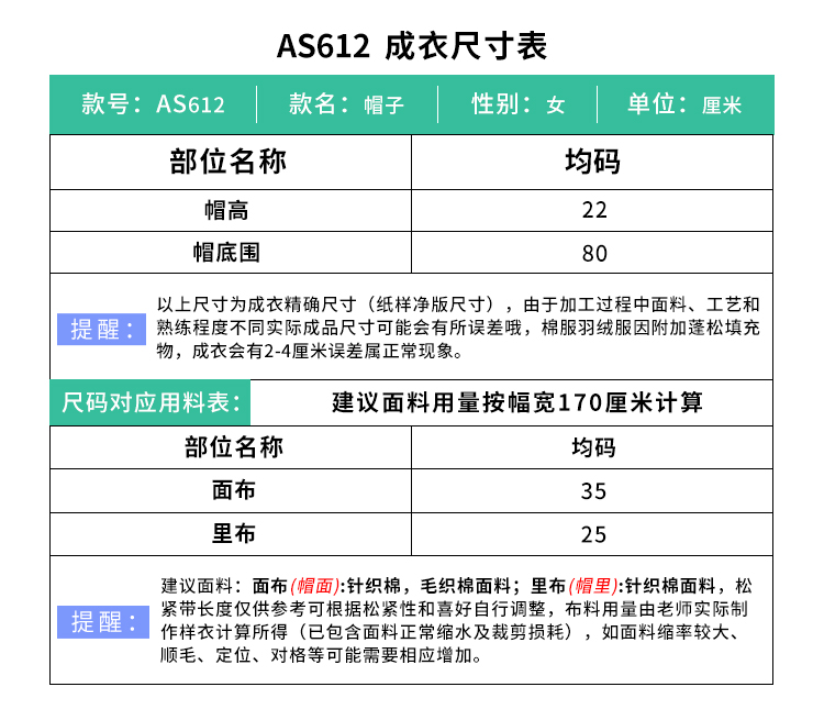 裁缝学苑AS612秋冬小帽沿洋气渔夫帽纸样女装复古帽子样板图纸