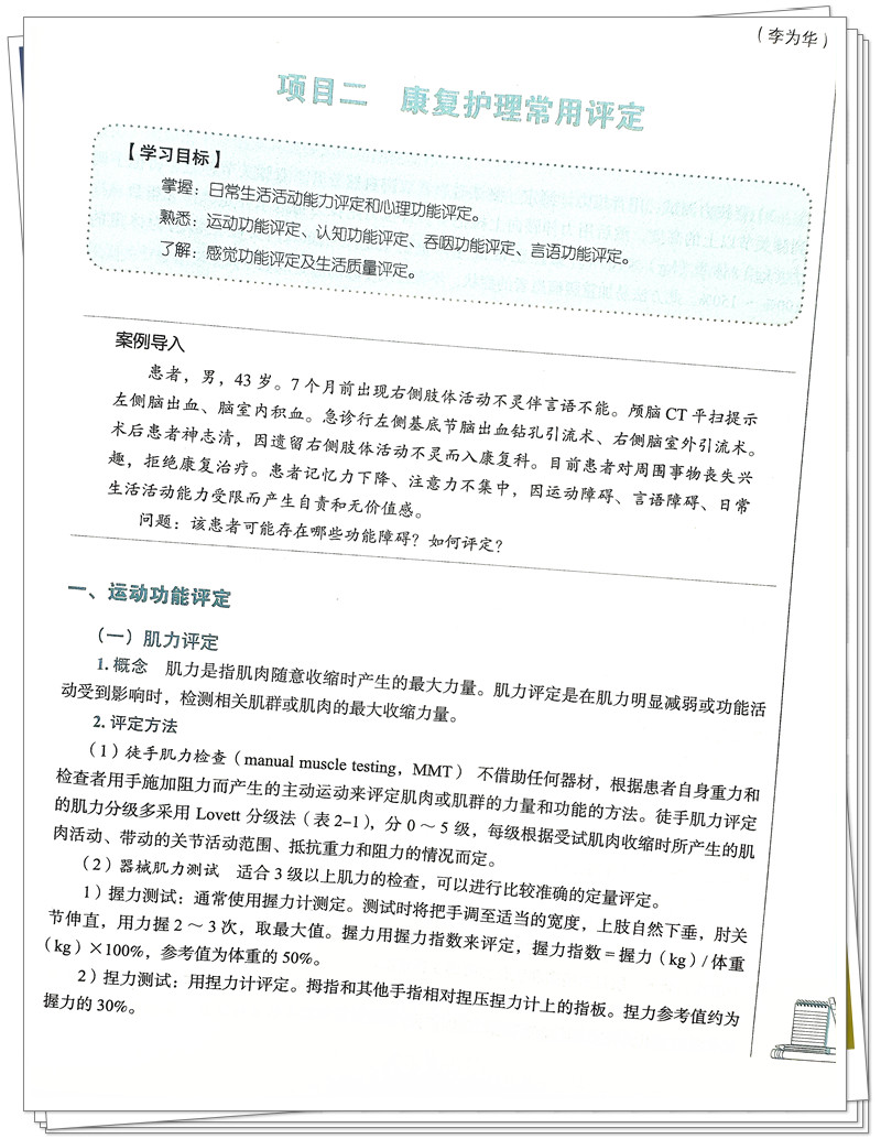 本教材为全国中医药行业高等职业教育“十四五”规划教材,主要内容包括康复护理的概论、康复评定基础、常用康复护理基本技术、常见伤残疾患患者的康复护理、中医康复护理五个章节。本教材在借鉴相关教材的基础上,注重基础理论与临床实践相结合,突出护理实践技能,结合康复护理现状,吸收目前先进的康复护理技术,反映当代康复护理学的水平,注重简练、实用,并配有插图,以便学生理解和掌握,适用于护理学、康复治疗学等专业的教学使用。