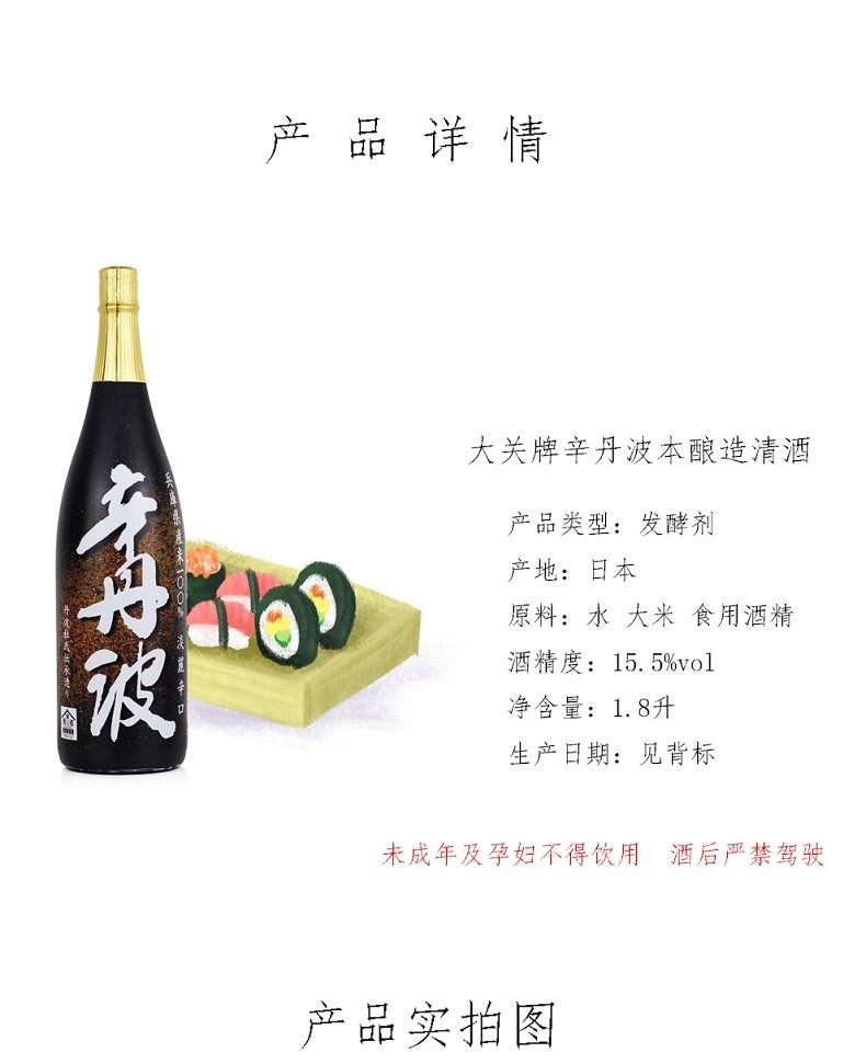 【正品行货】日本原瓶进口大关辛丹波酿造清酒(发酵酒)1.8L