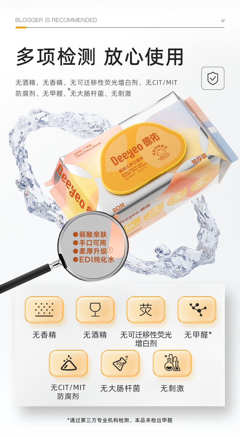 德佑婴幼儿儿童手口湿巾 婴儿儿童湿巾80抽