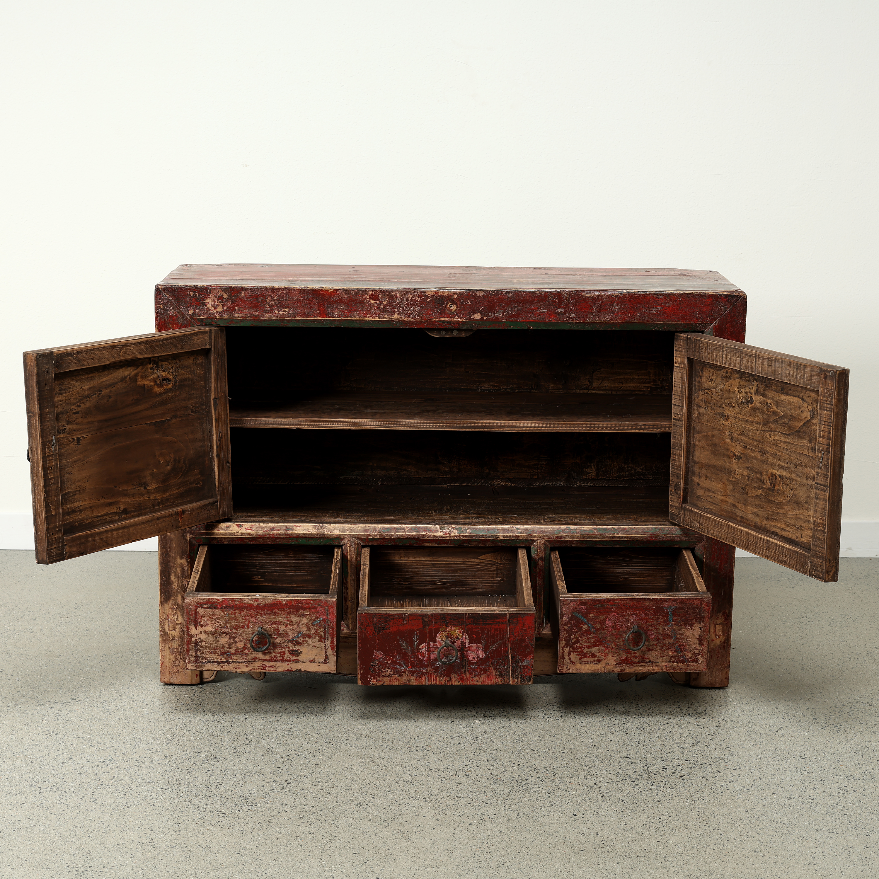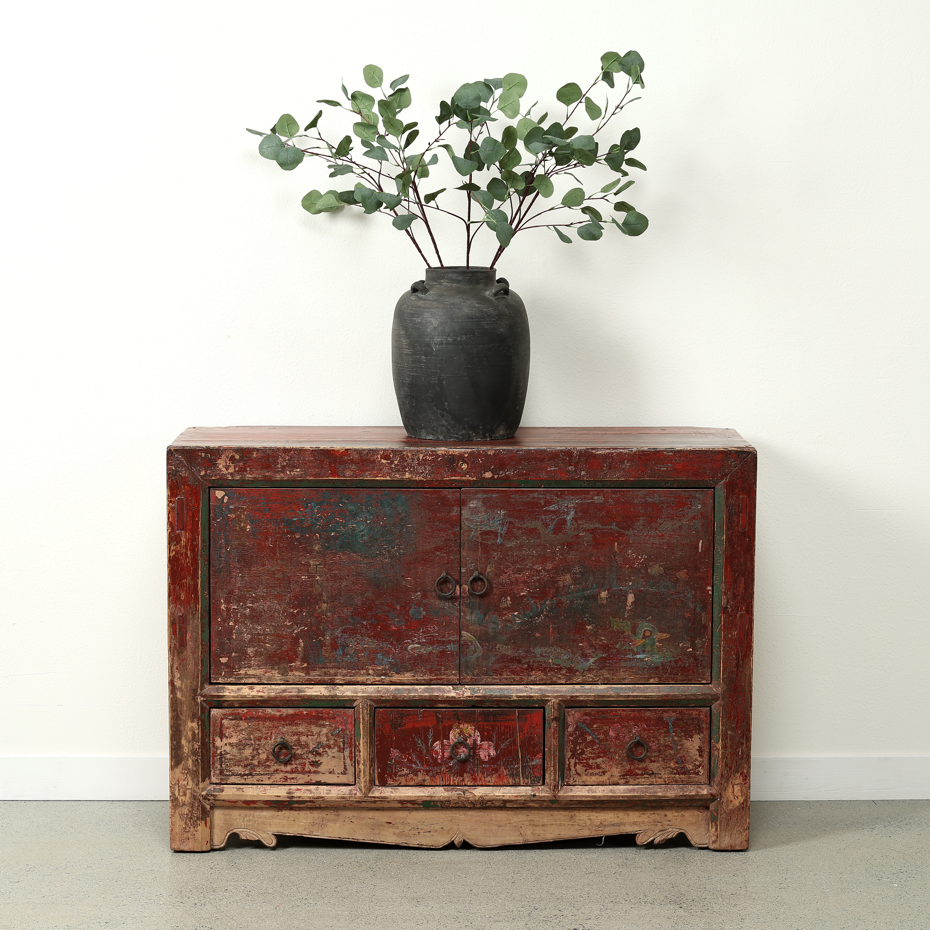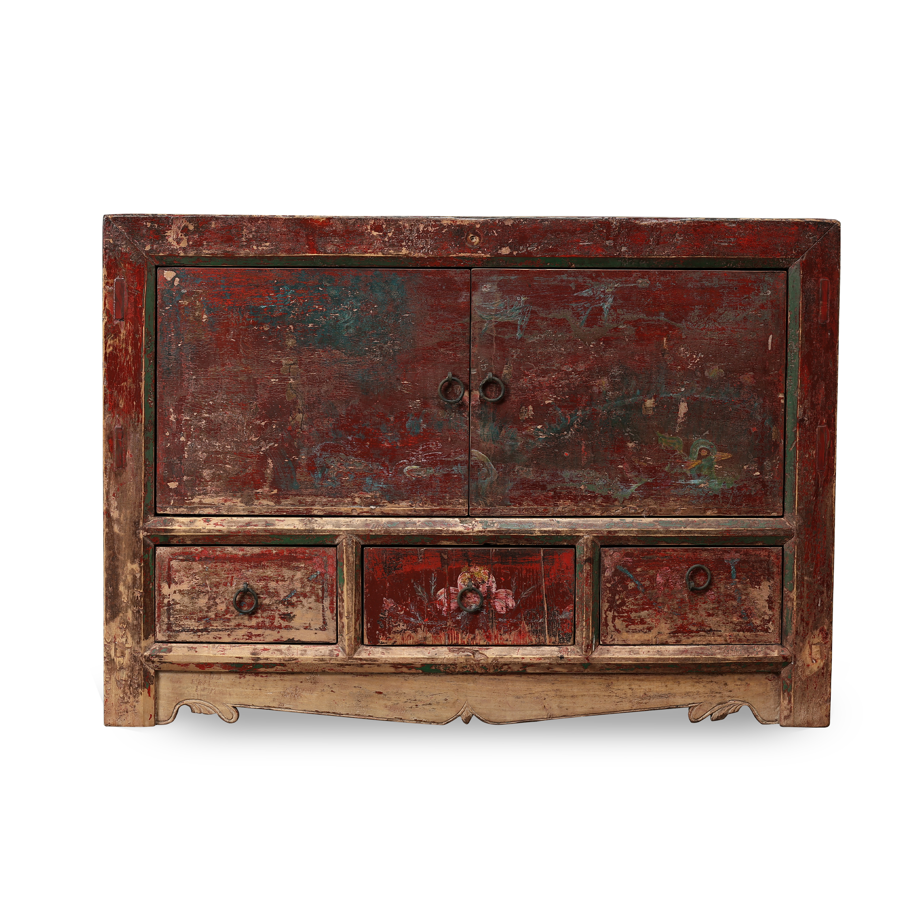 现代新中式仿古典实木彩绘彩漆床头柜手绘做旧复古卧室储物装饰柜