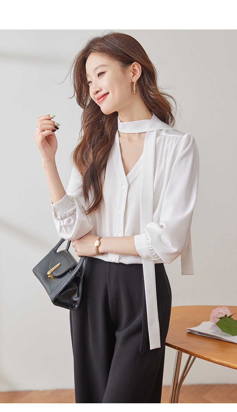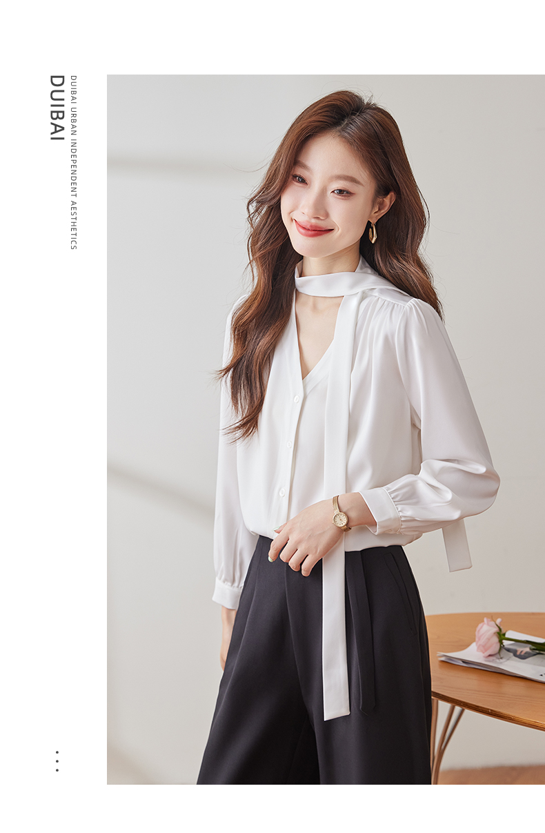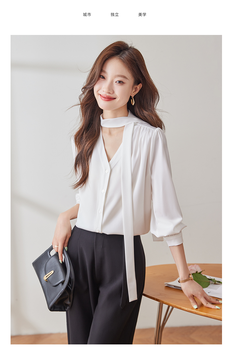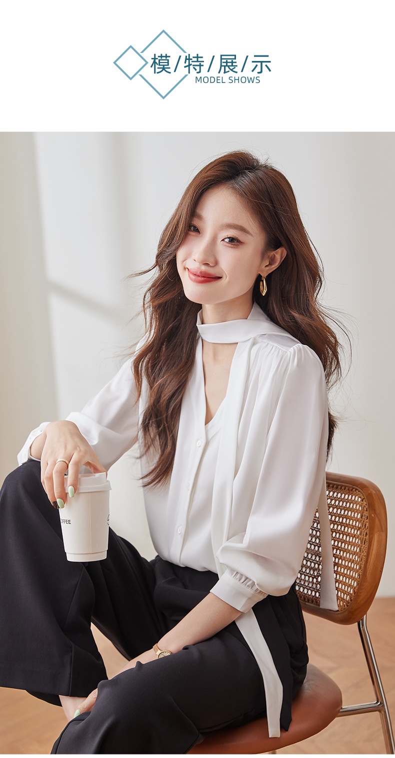 Q137新款长袖百搭宽松韩版气质衬衣白色洋气时尚小众衬衫