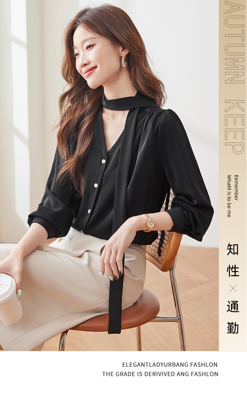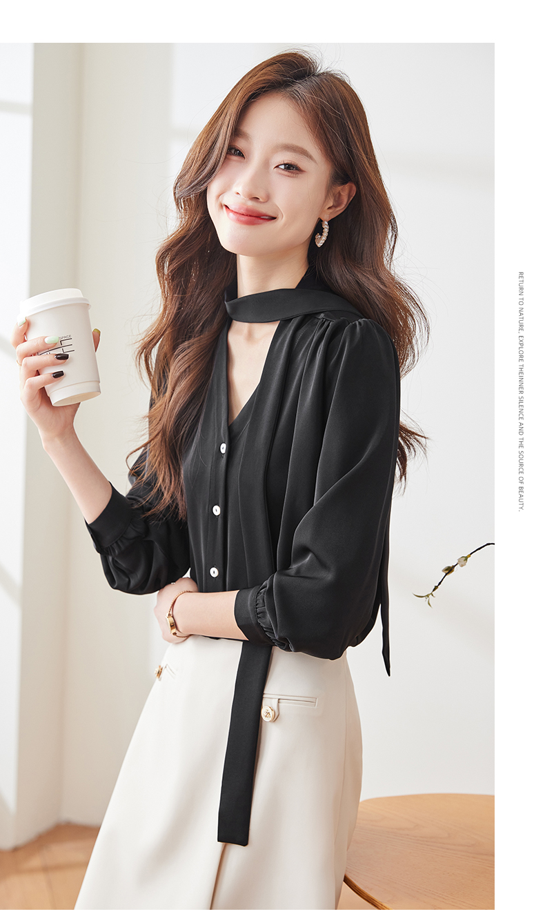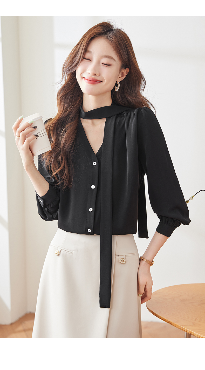 Q137新款长袖百搭宽松韩版气质衬衣白色洋气时尚小众衬衫