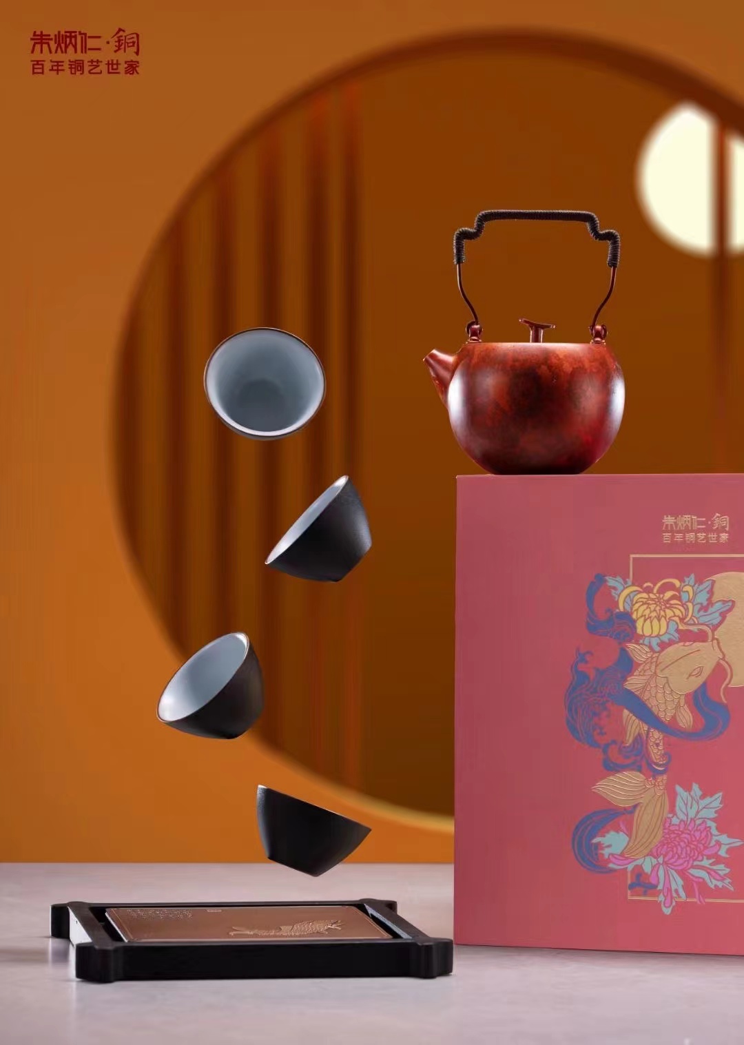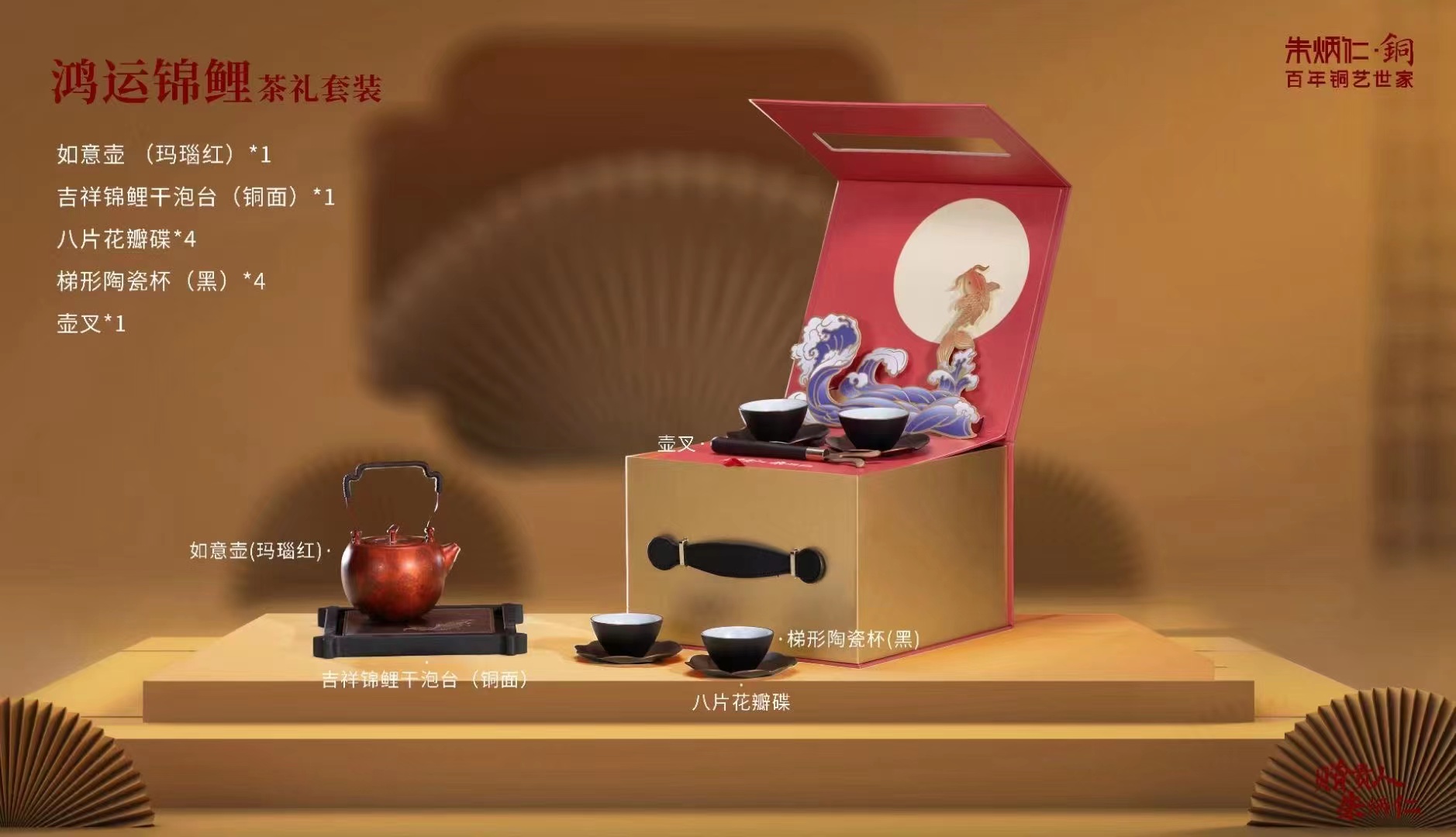 【6F】朱炳仁铜 鸿运锦鲤茶礼套装