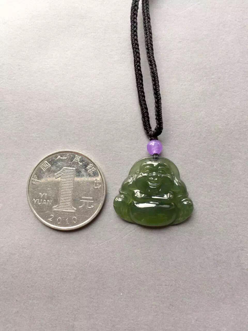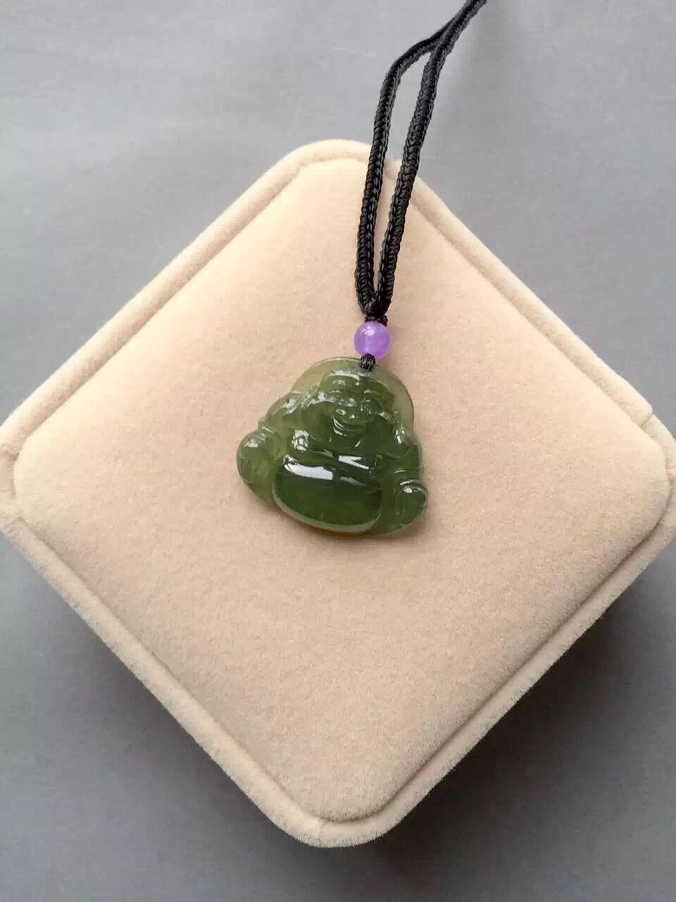 冰种橄榄绿翡翠弥勒佛,21.6*24.5*5.4mm,尺寸好,种水好,种气老起荧光,橄榄绿色,很少见,纯手工精雕,佛公特别漂亮。这年头,小四价位种水如此好,还有颜色的弥勒佛不多了,合眼缘就速度吧
