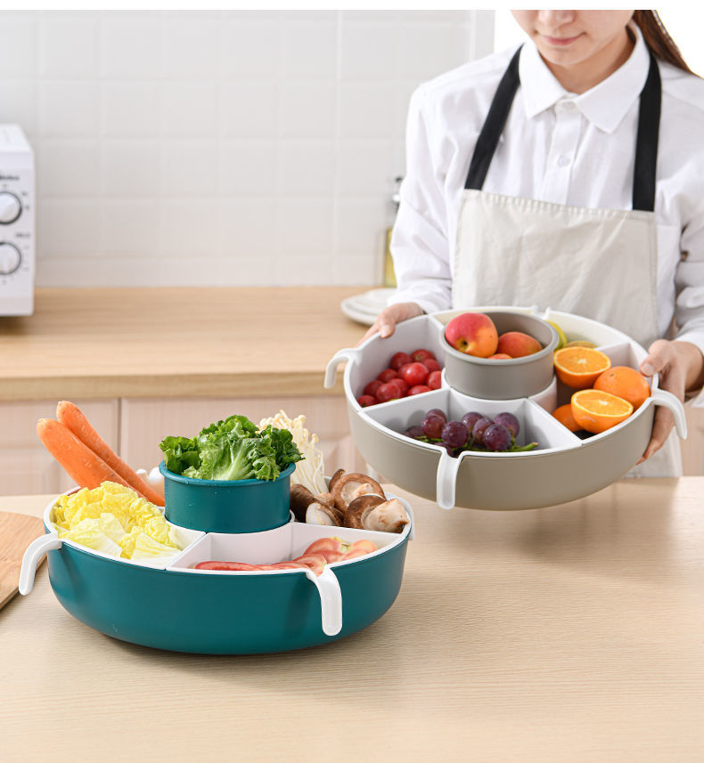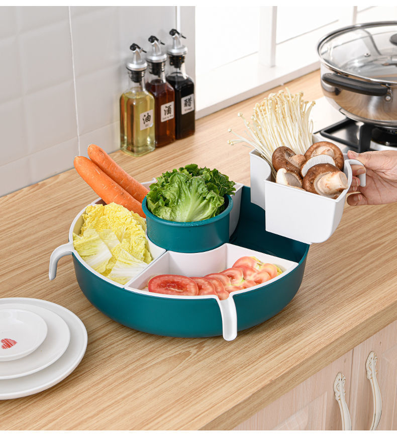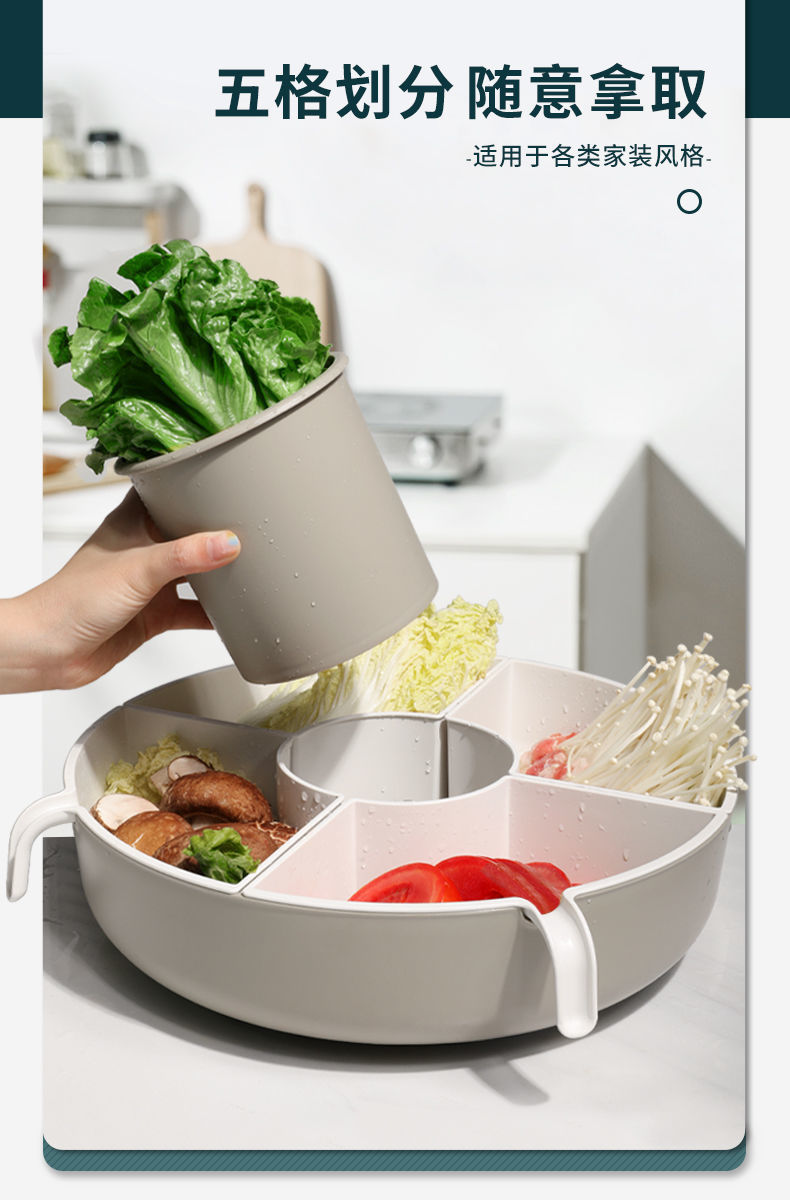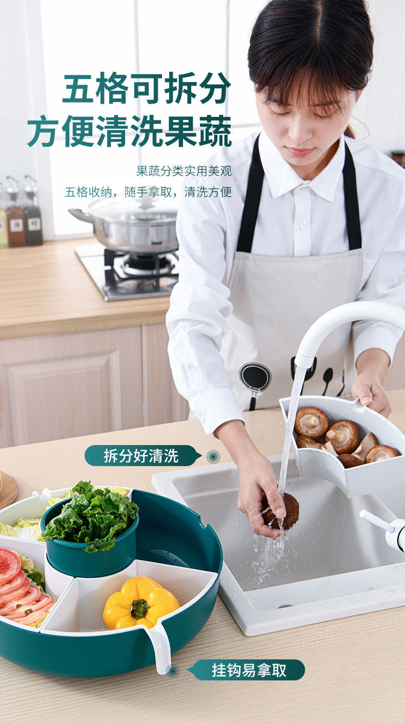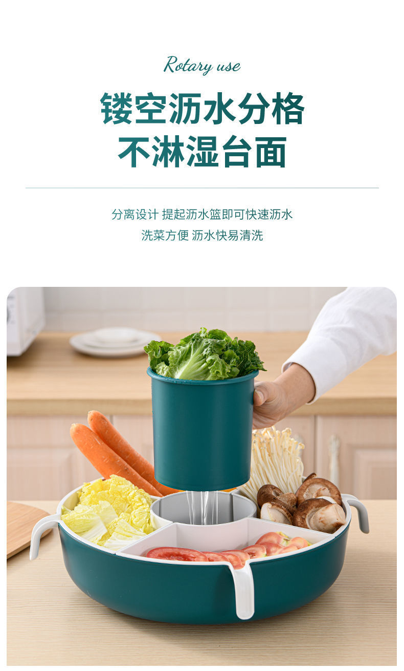 多功能旋转沥水篮家用厨房火锅拼盘多格水果盘洗蔬菜篮
