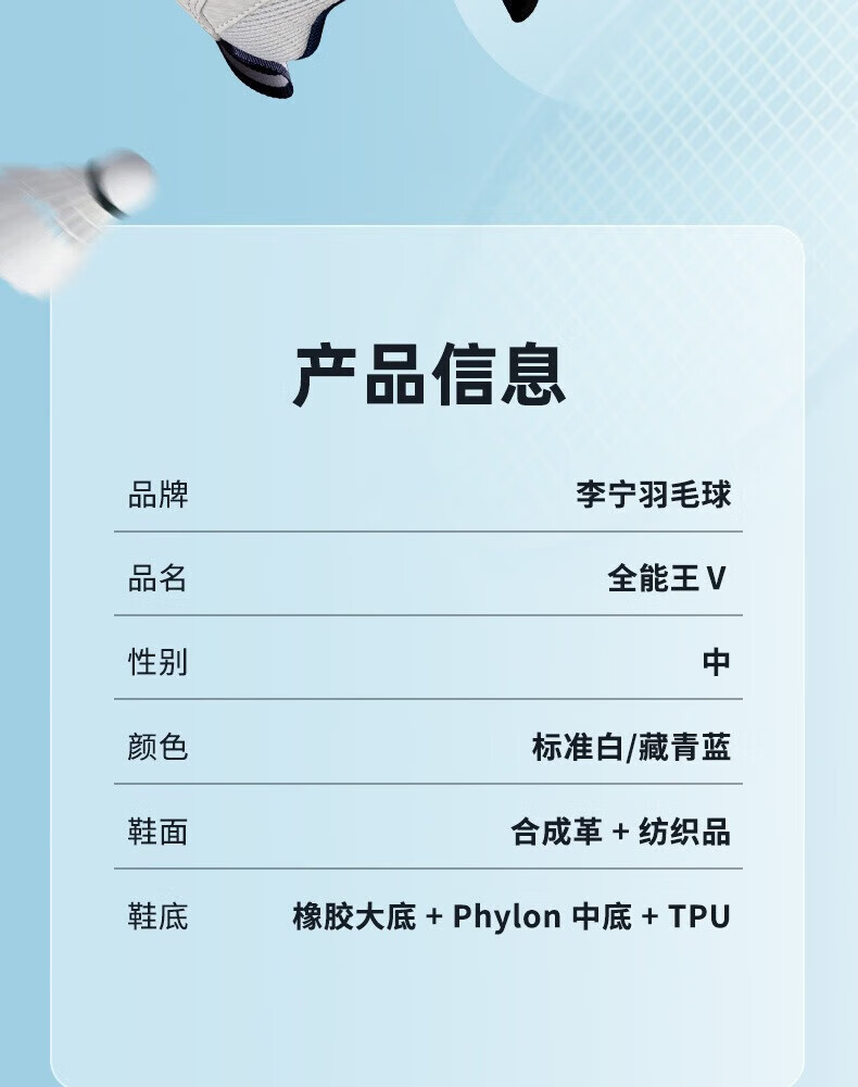 李宁 男女同款 羽毛球鞋 全能王V训练款 AYTT001
