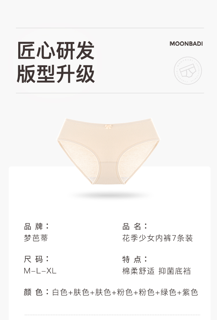 【7A抑菌 纯棉7条装】女士内裤舒适透气高弹不勒中腰提臀收腹1160#花季少女内裤