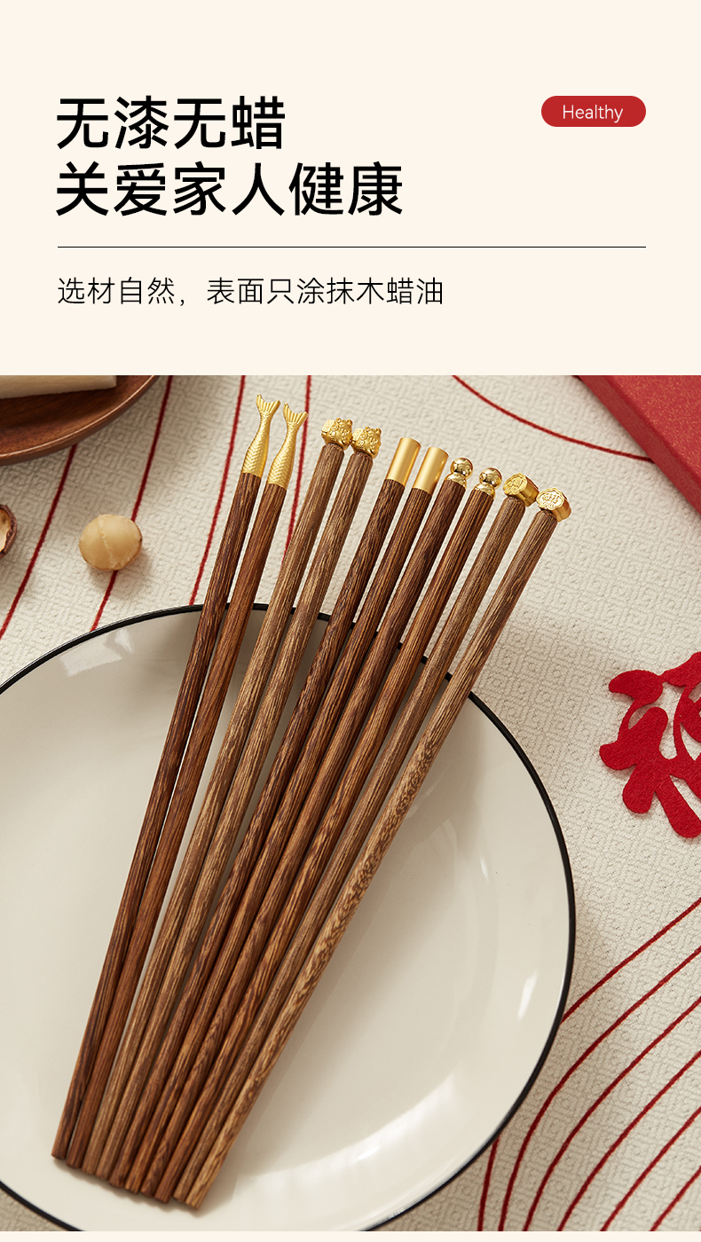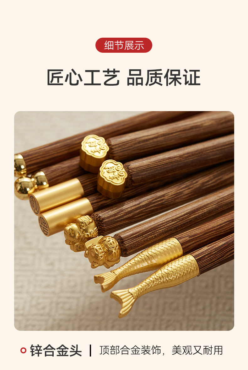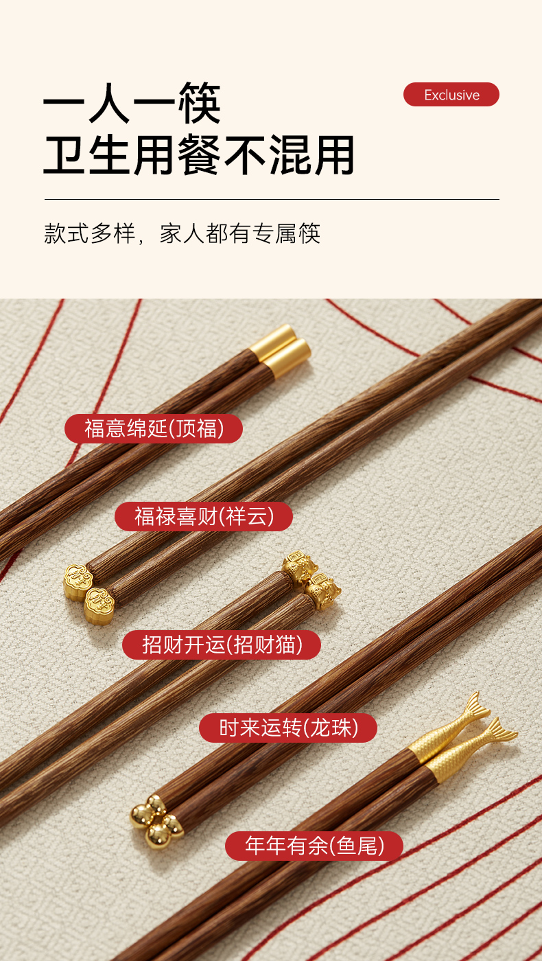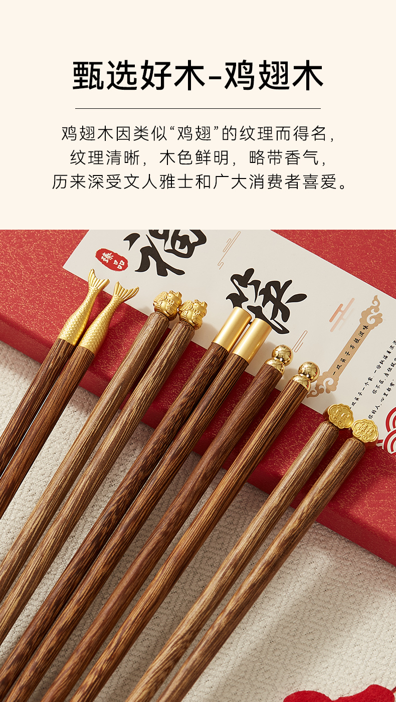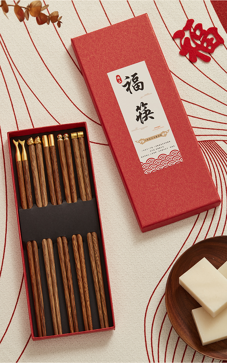 初心| 合金鸡翅木筷祥云鱼尾招财猫5双装