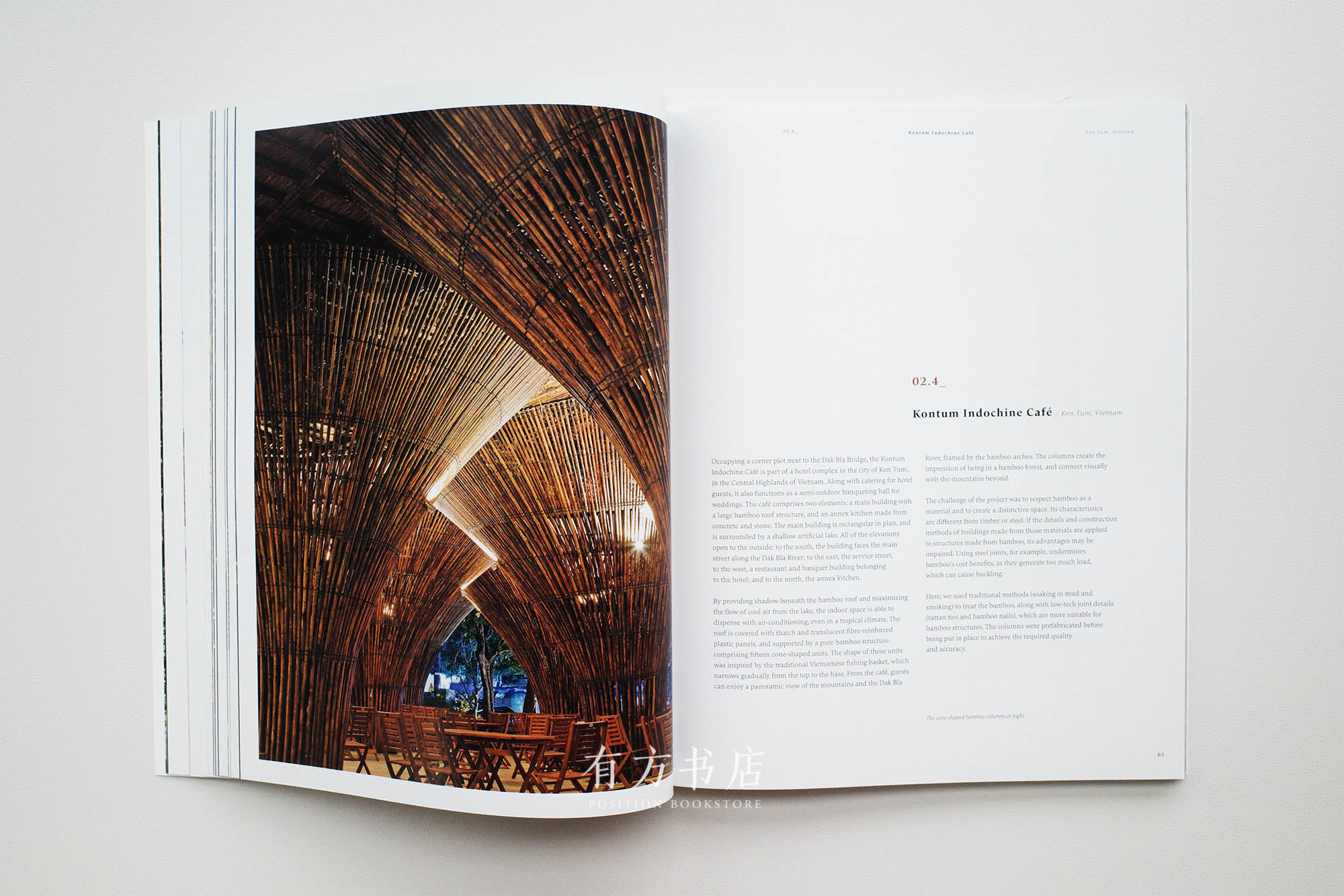 作品集收录了武重义职业生涯中所有重要、具有代表意义的作品。包括他第一次尝试用竹子作为建筑材料的风与水酒吧(Wind and Water Bar),度假村,艺术装置,以及他最具革新性的住宅系列——树之家(House of Trees)。这套作品集证明了:绿色建筑,的确与建筑的在地性、美感和优雅息息相关。