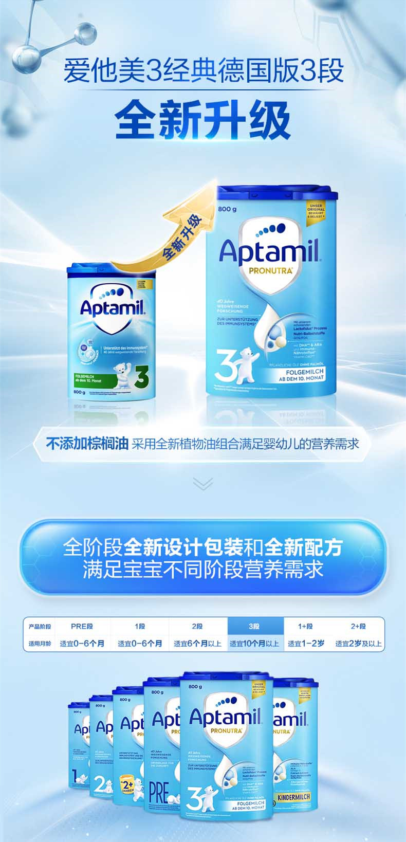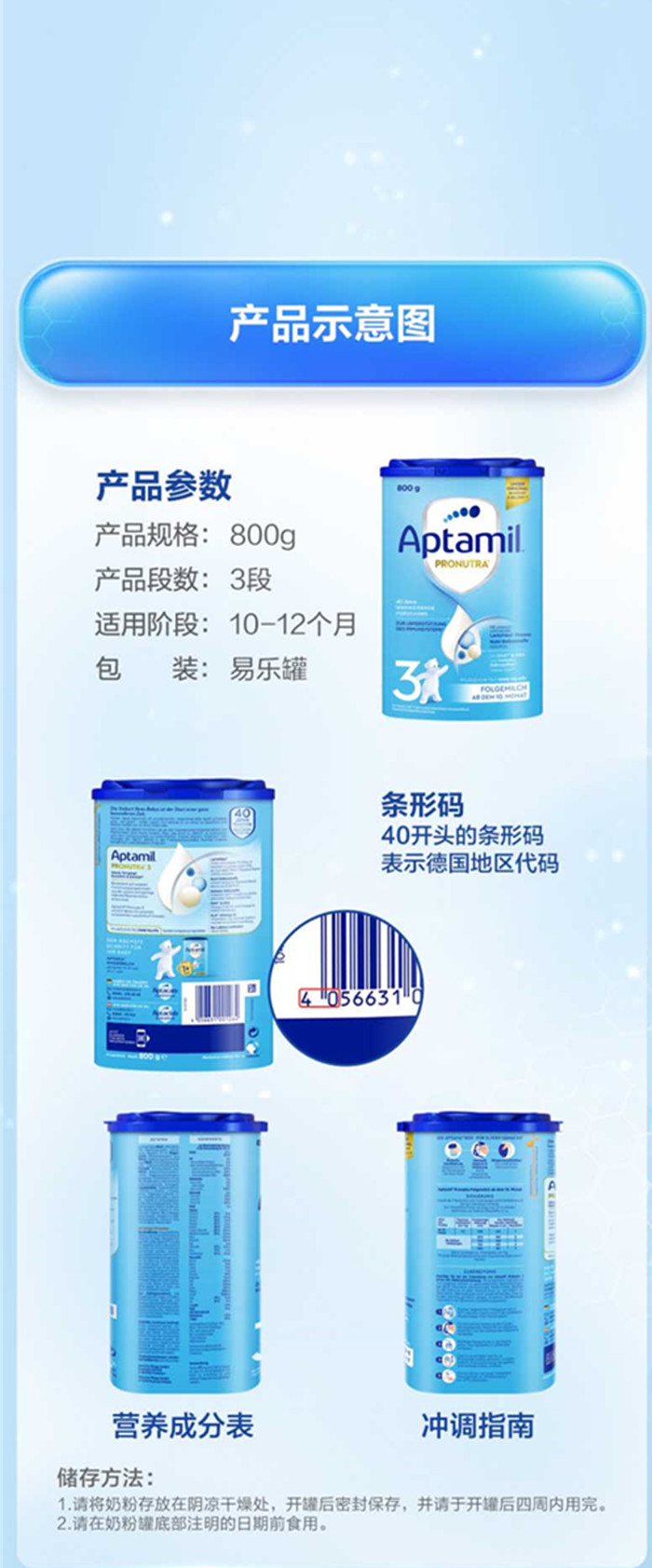 【保税仓】德国Aptamil爱他美奶粉3段(10-12个月宝宝) 800g