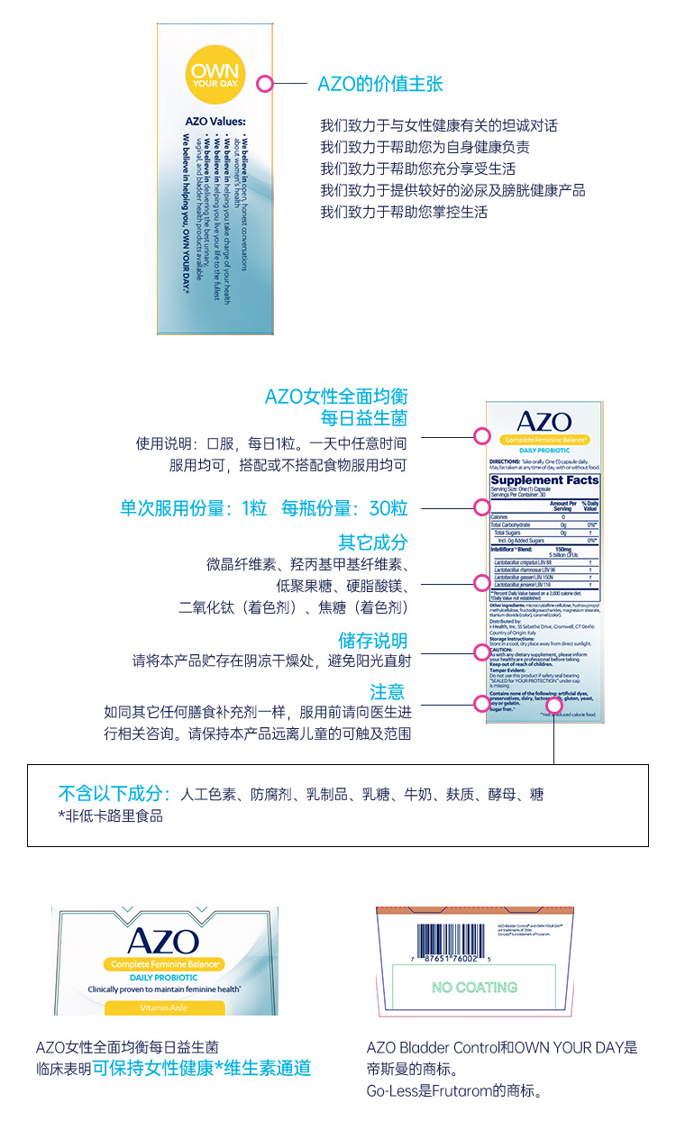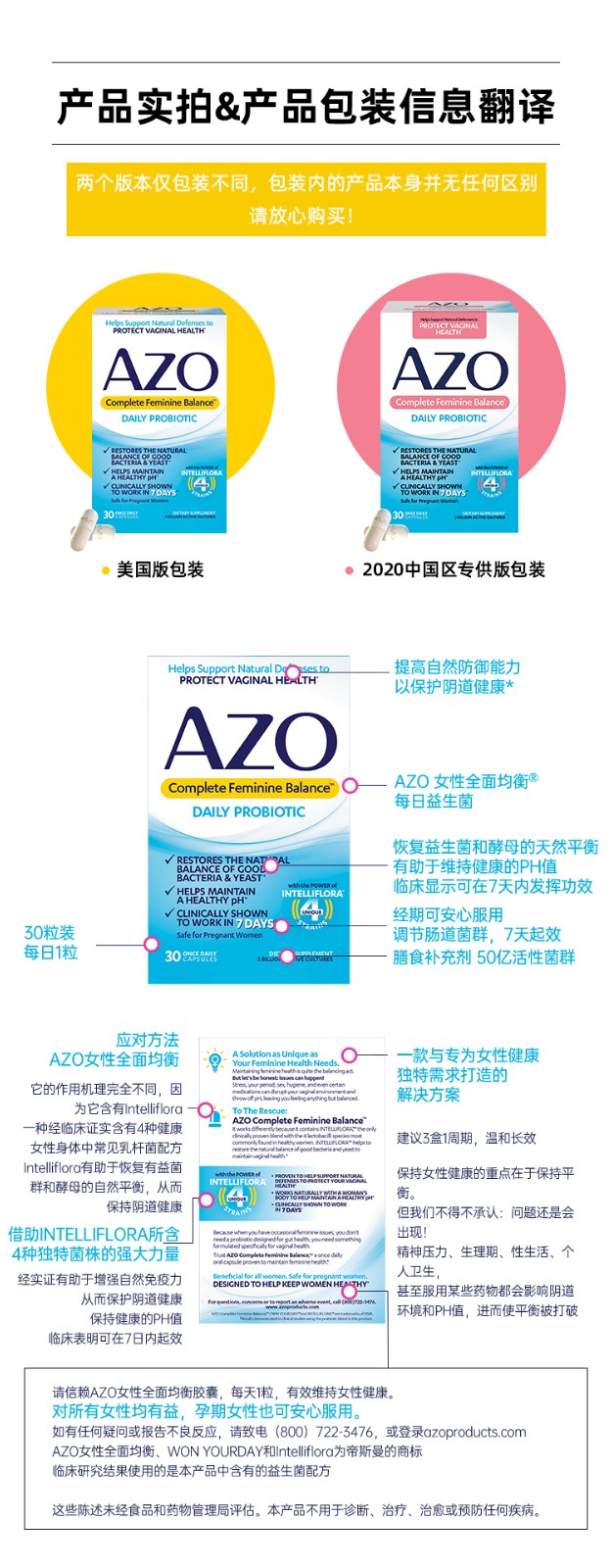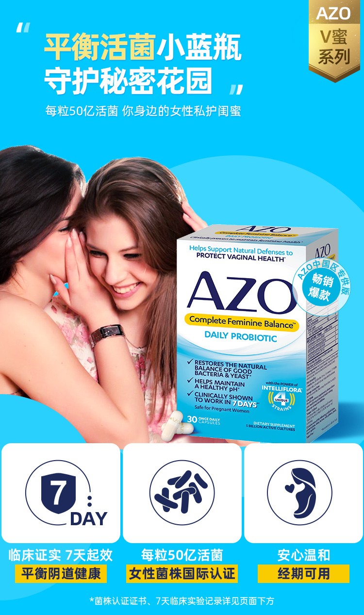 【保税仓】美国 AZO 女性私护全面平衡益生菌30粒 小蓝盒