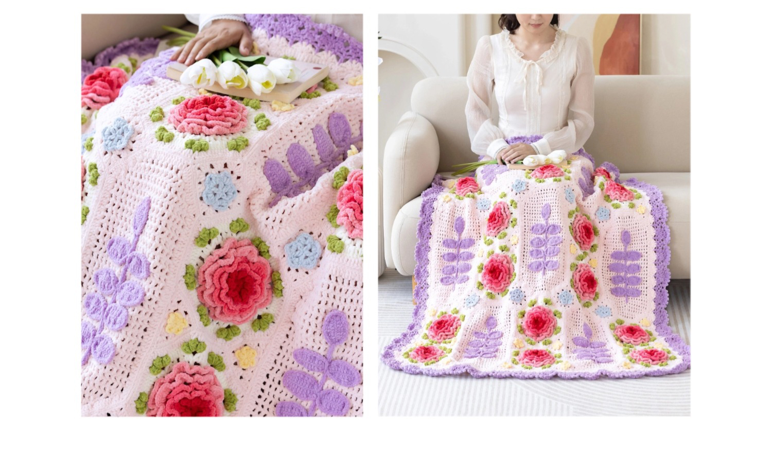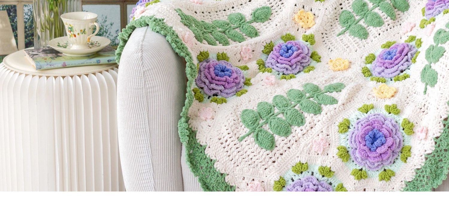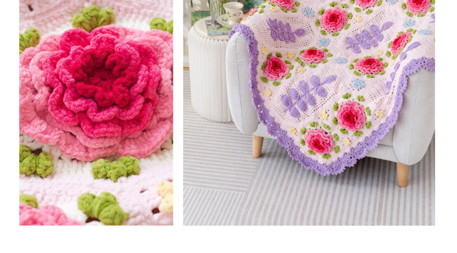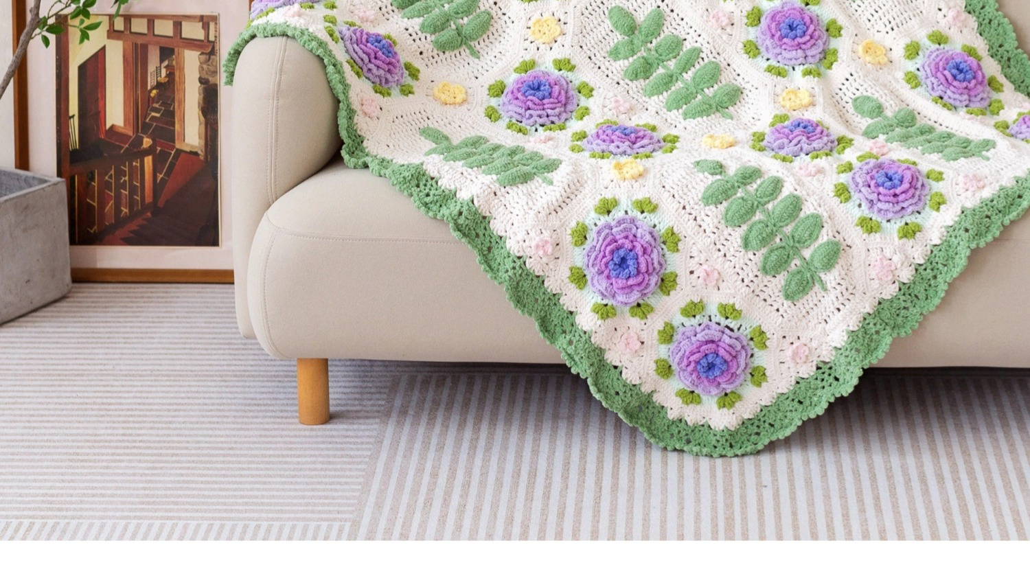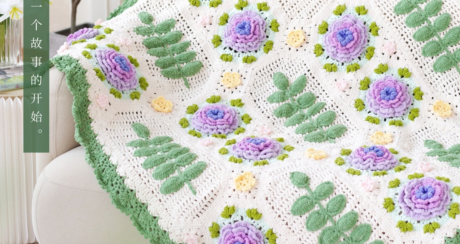 苏苏姐家莫里斯蔷薇花毯手工diy编织钩针毯子毛线团冰条线材料包