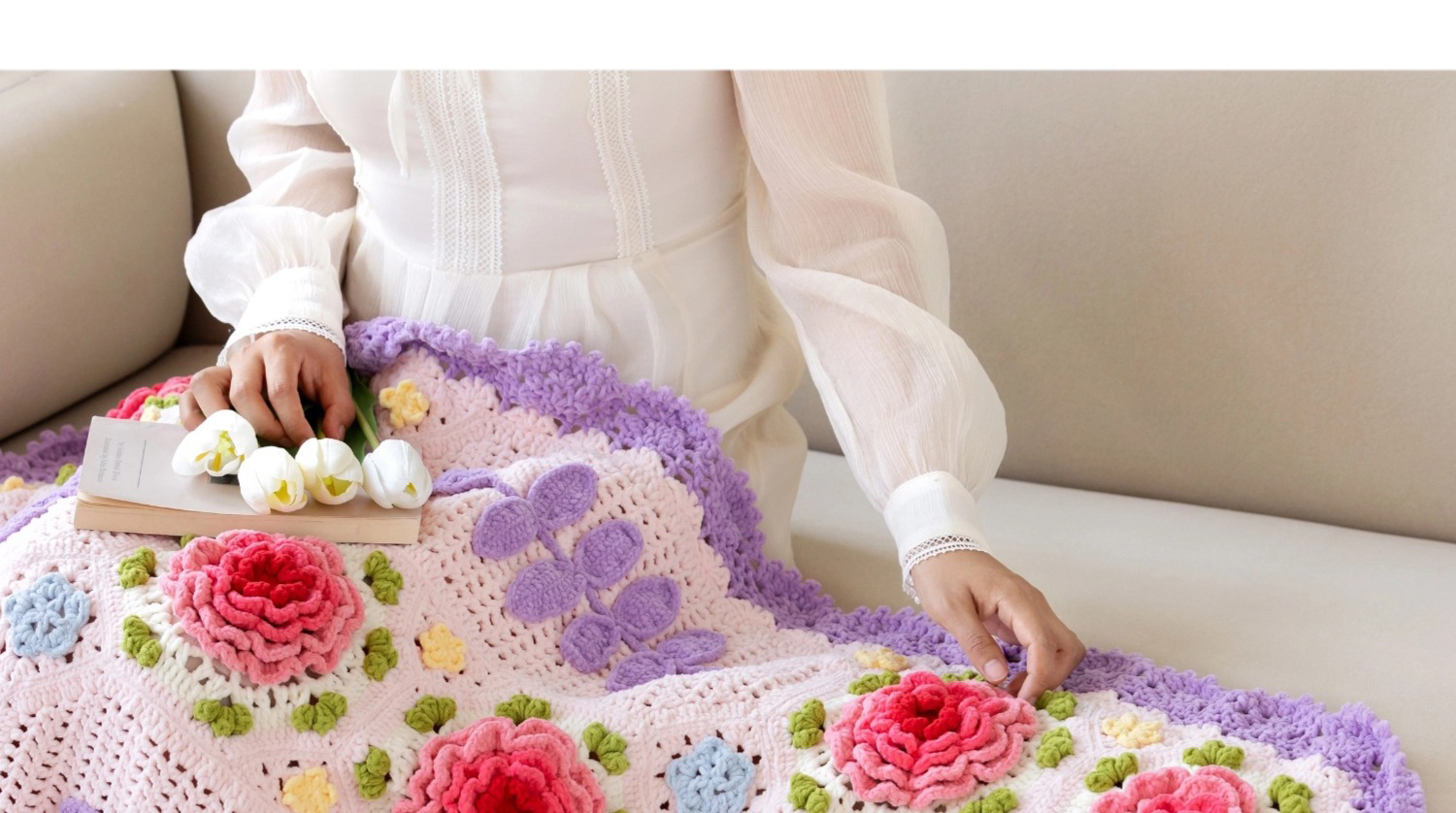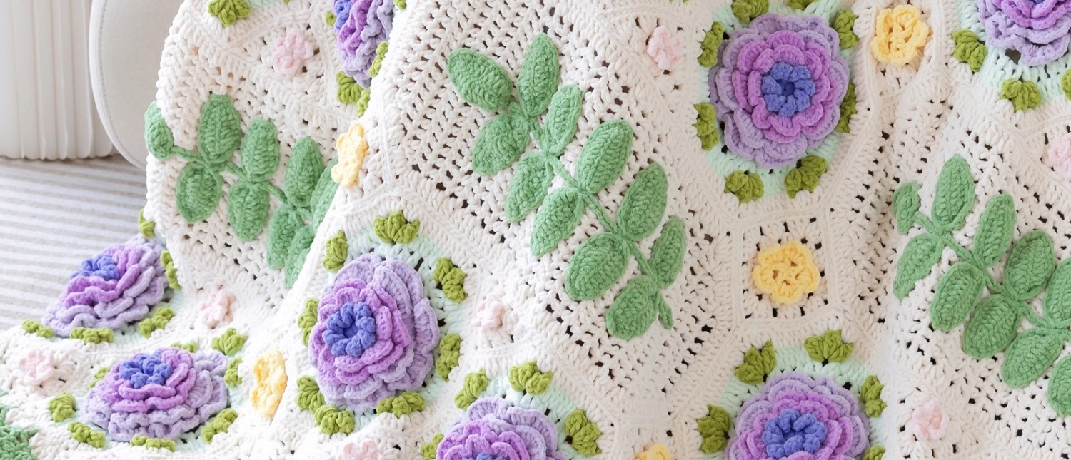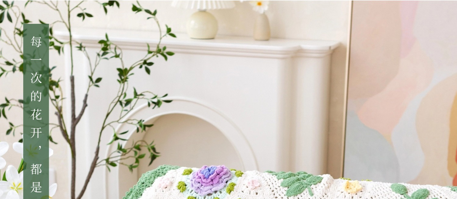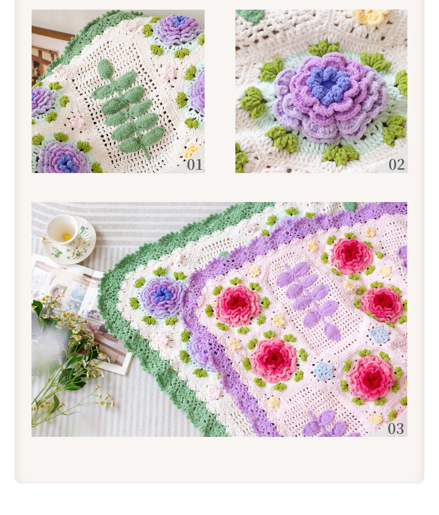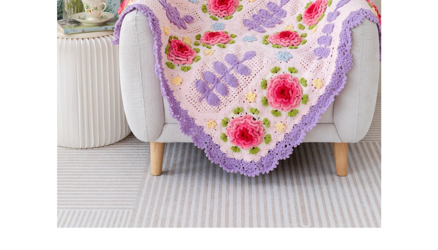 苏苏姐家莫里斯蔷薇花毯手工diy编织钩针毯子毛线团冰条线材料包