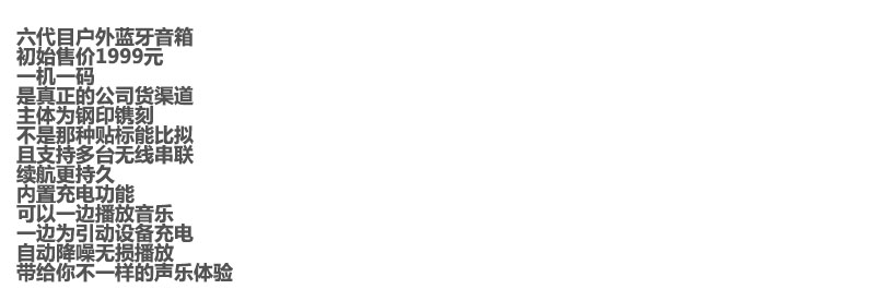 钢印镌刻+一机一码,公司货渠道。六代目户外防水蓝牙音箱C122988