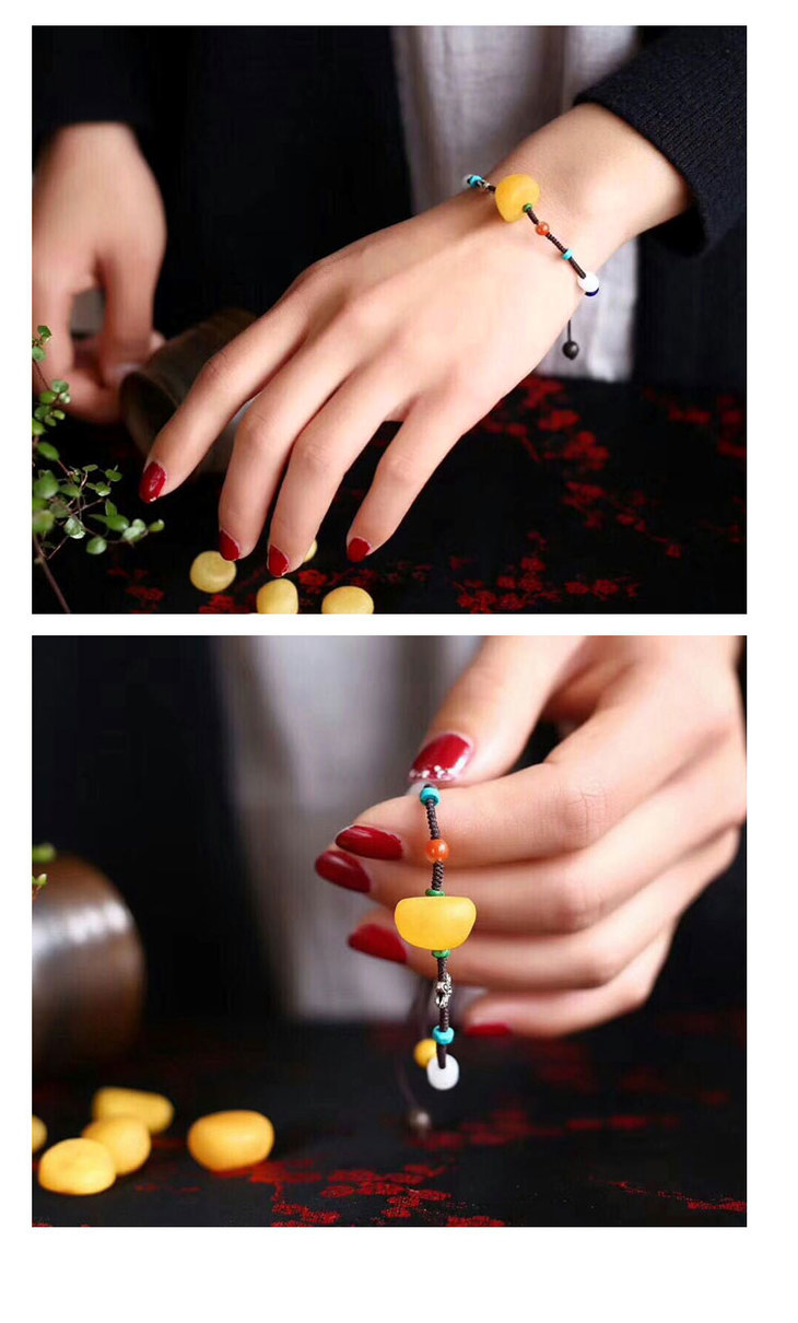 女巫店鸡油老蜜蜡五颜六色的宝石传统有机宝石搭配现代美学手链