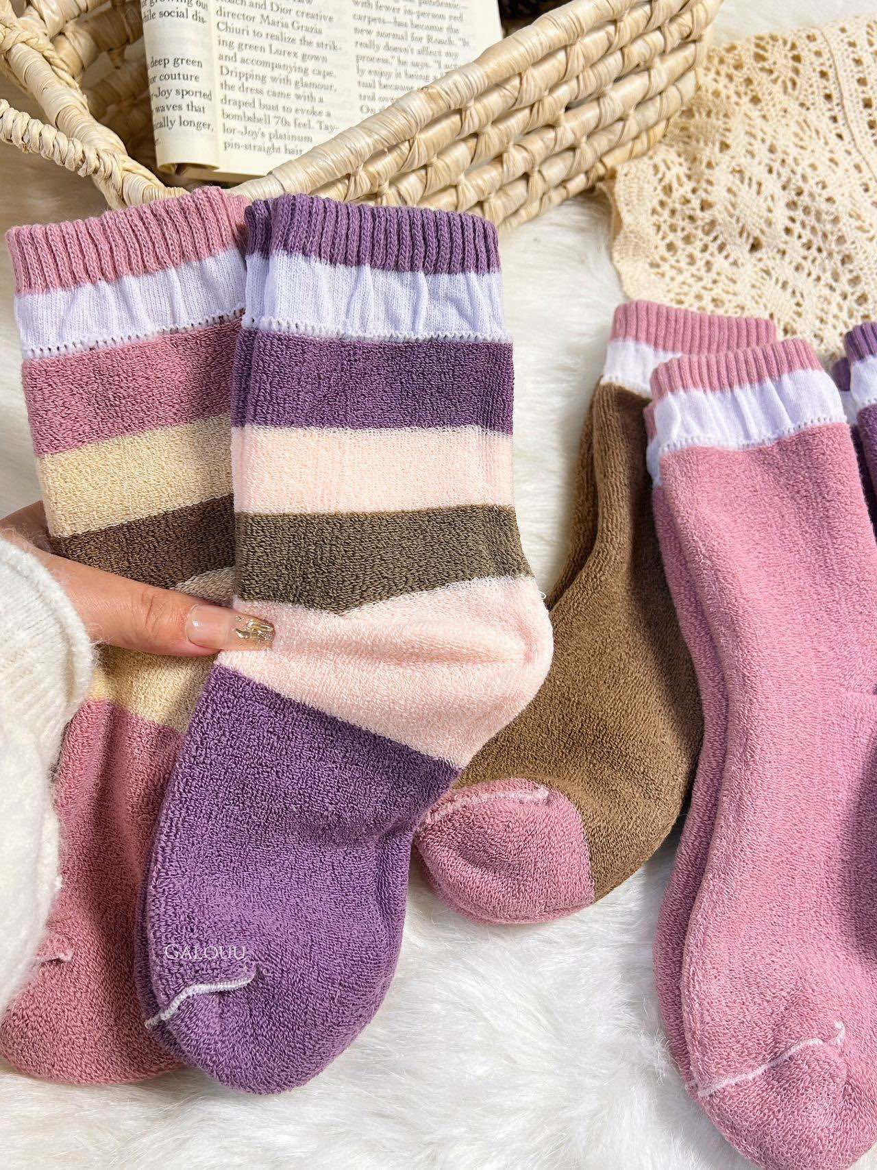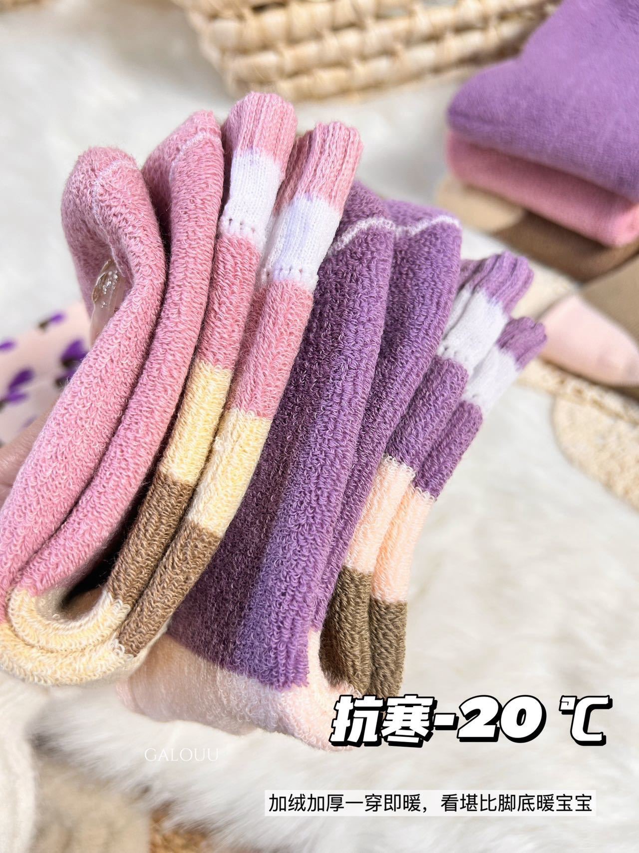 面料采用98%聚酯纤维+2%氨纶配比融合了高弹力纤维,男女都可穿 还能适配各种脚型胖脚、长脚都能hold住完全没有束缚感和压迫感仿佛双脚的第二层肌肤一样再也不用担心双脚被挤变形加倍加厚,御寒保暖 拿到手第一感觉【厚实+软】紧密编制外层——阻挡寒风的侵入 毛圈绒内里——升温+蓄热+锁温外层隔绝寒风,内里和肌肤接触时通过压缩掉接触面的空气形成一层蓄热保温层不断储存并释放双脚产生的热量内里毛圈还是加厚蓬松且柔软,一触即爱