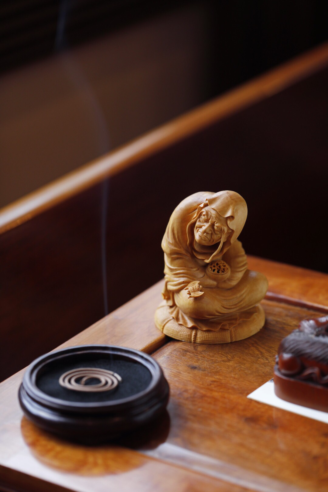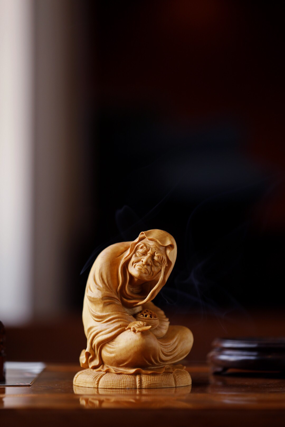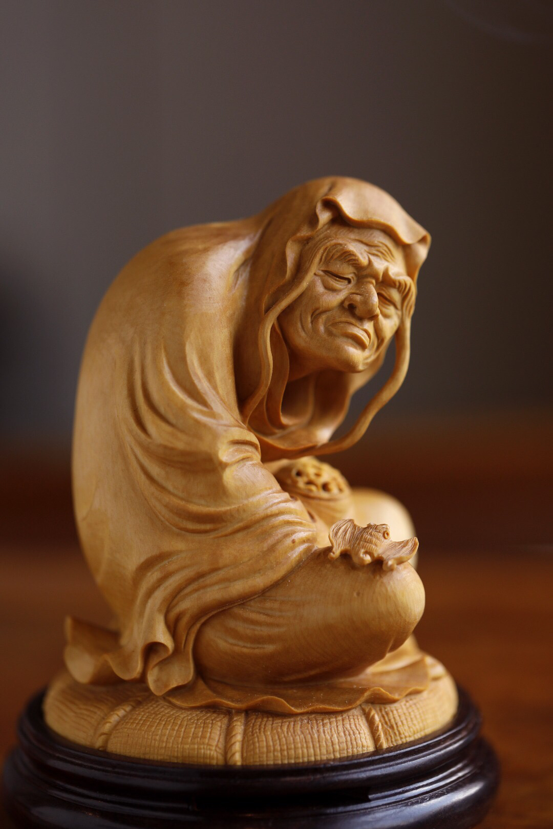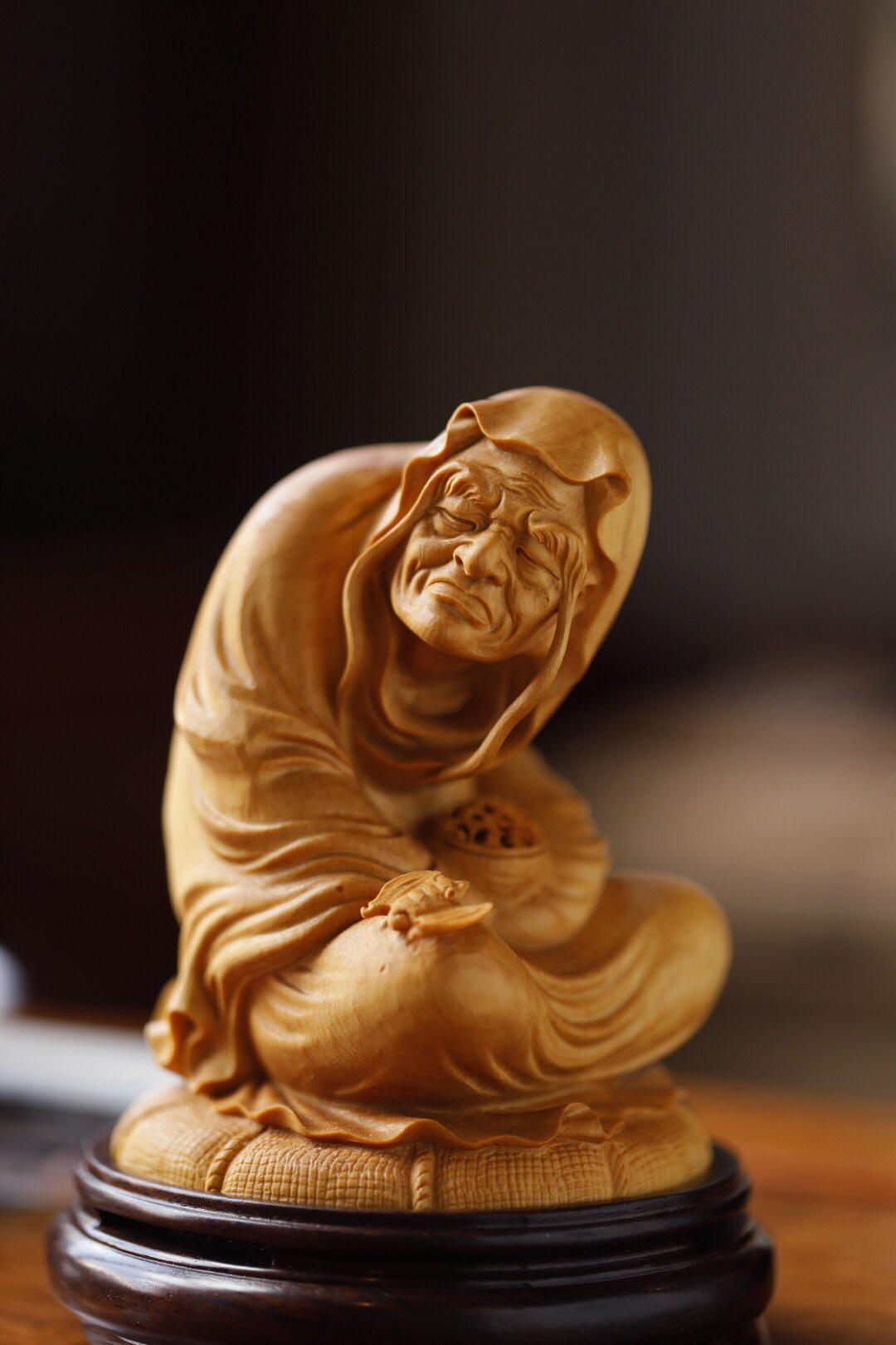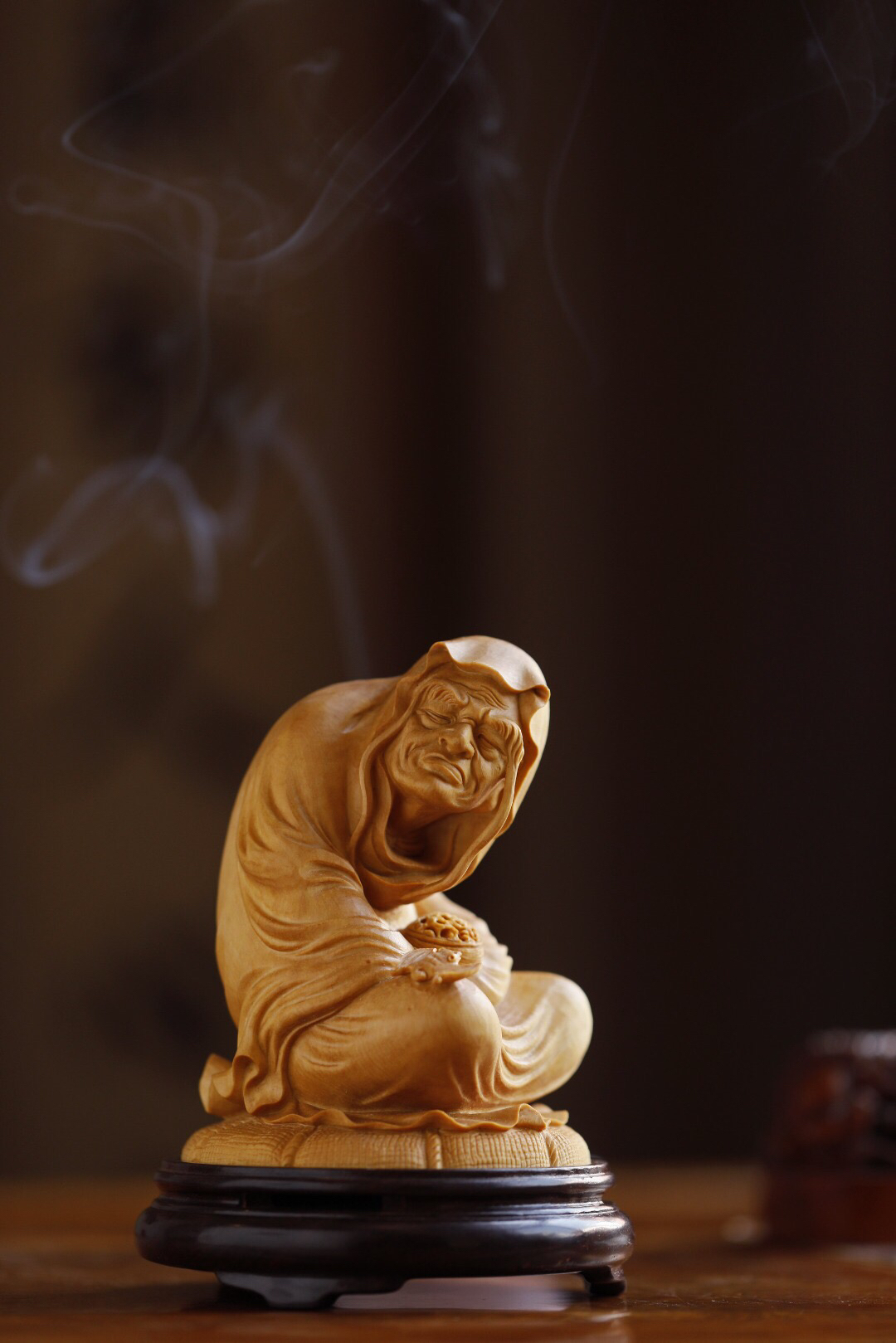 黄杨木长眉罗汉香炉 整木雕成,