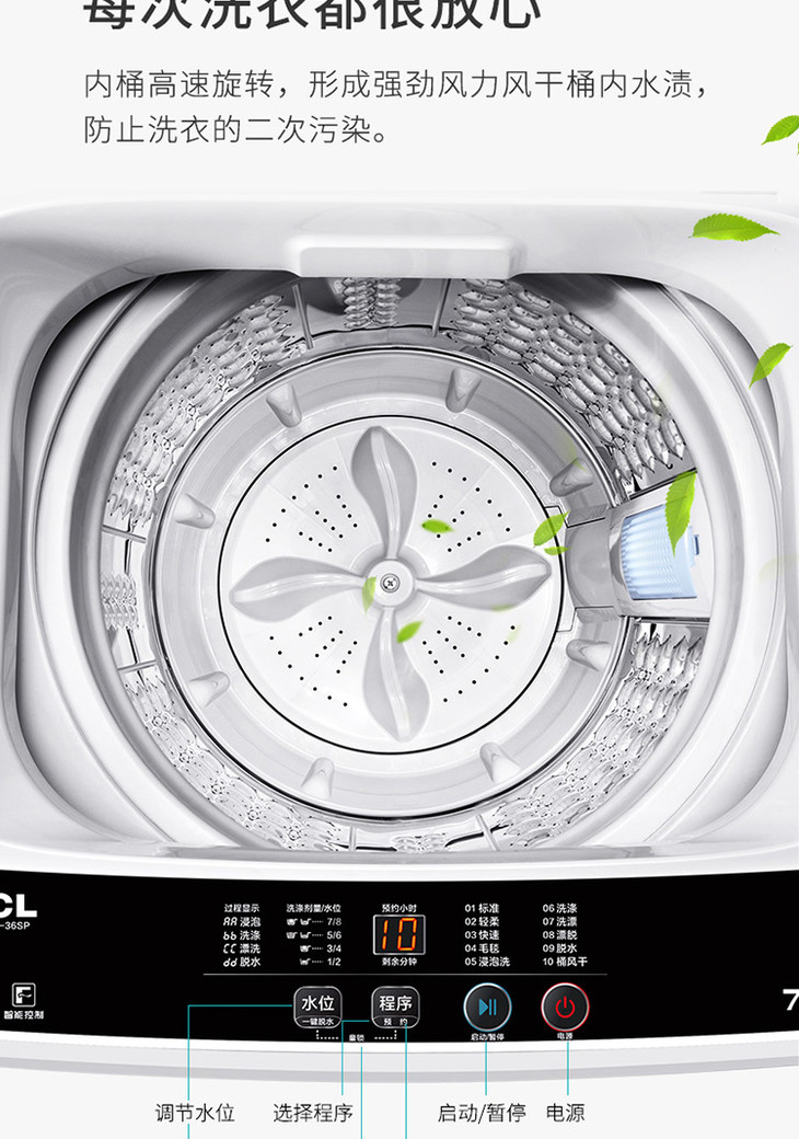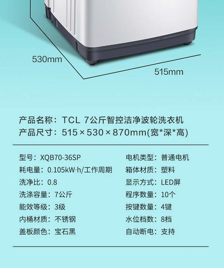 【TCL洗衣机】TCLXQB70-36SP宝石黑7公斤全自动波轮洗衣机