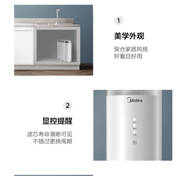 美的(Midea) 净水器 家用厨下式反渗透大通量净水机纯水机MRC2082-400G【母婴直饮】