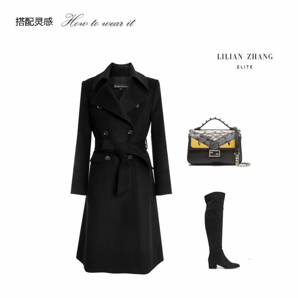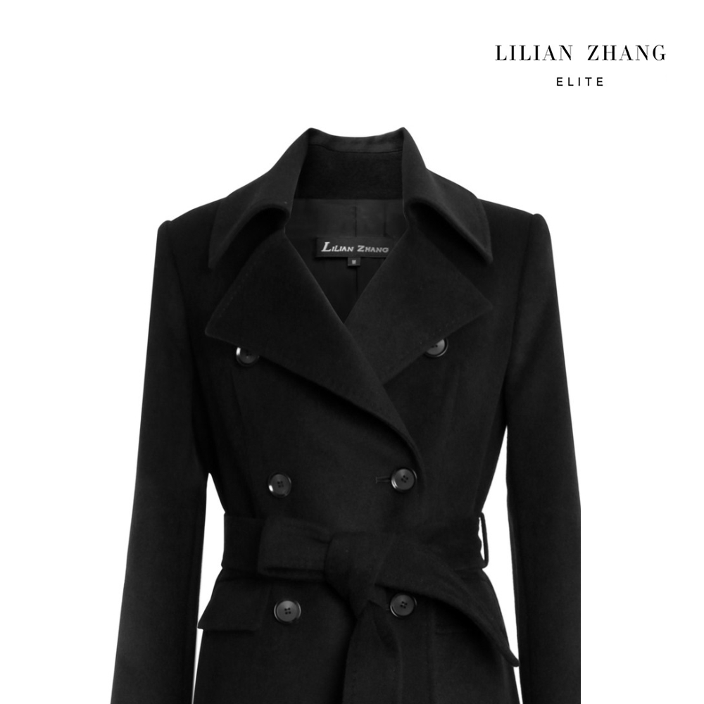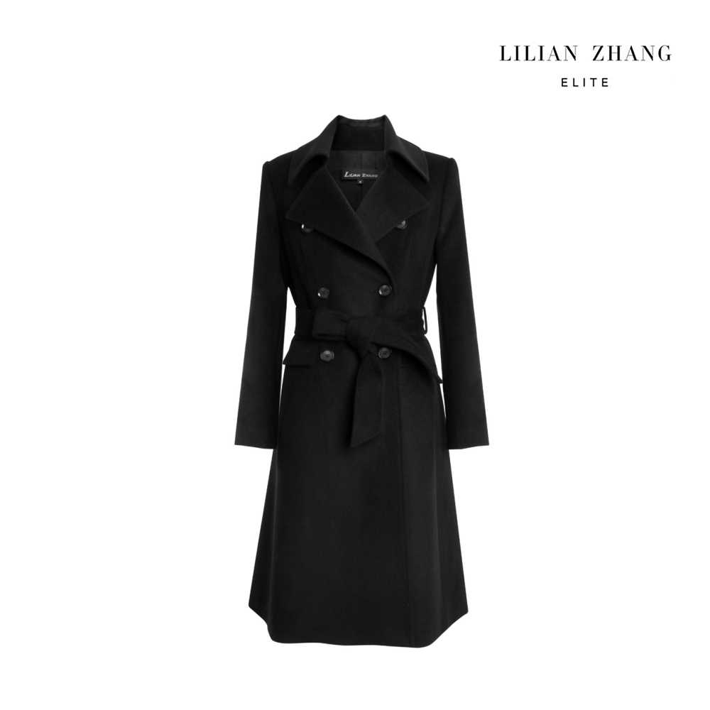 羊绒双排扣大衣 - 英伦风气质翻领百搭通勤中长款外套 1506007