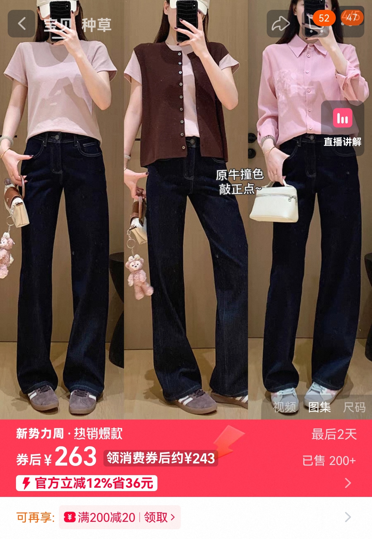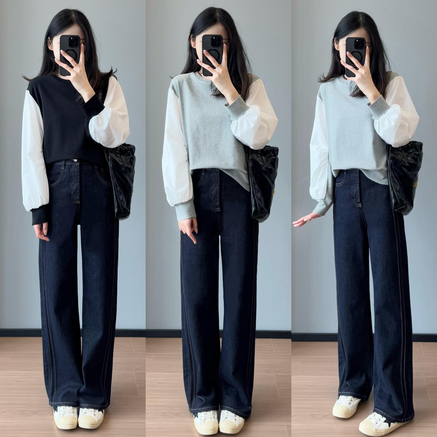 直筒,穿合适版型显腿直,穿大一码裤腿微宽松更洒脱率真。