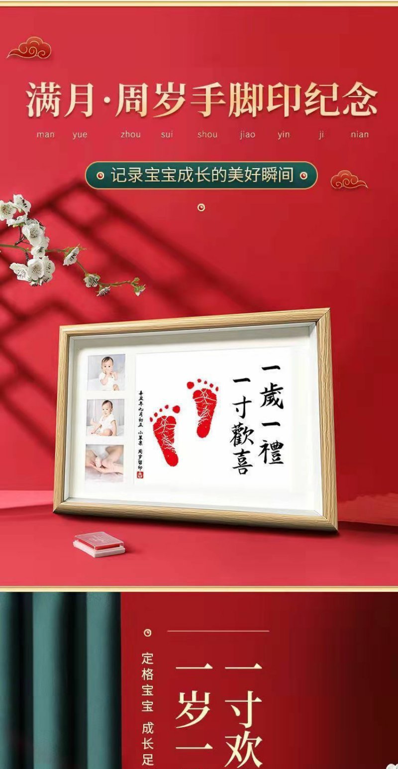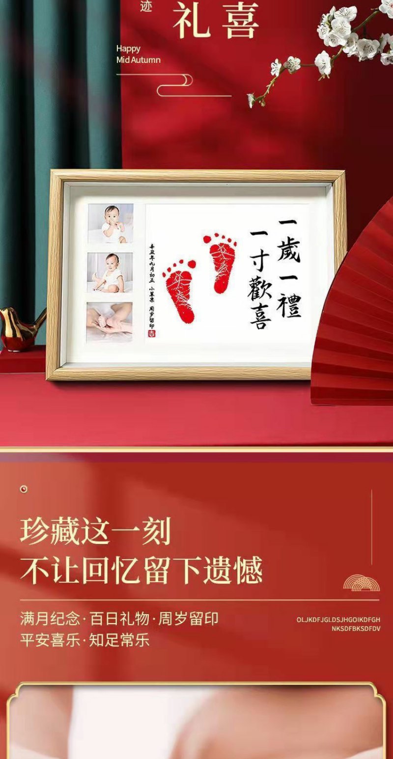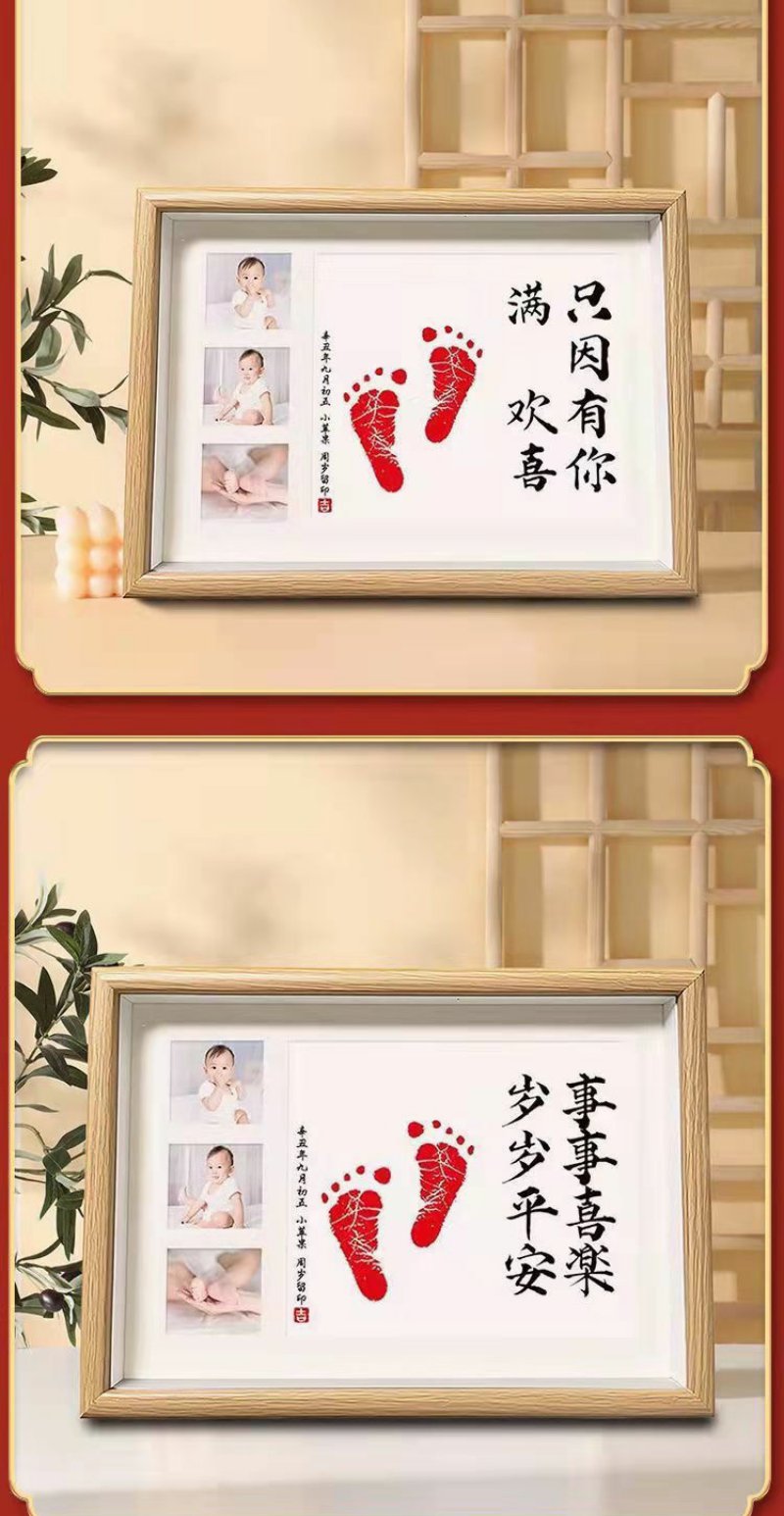 一岁一礼一寸欢喜宝宝周岁满月手脚印留念照片知足常乐相框摆台