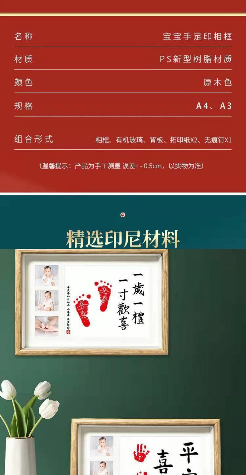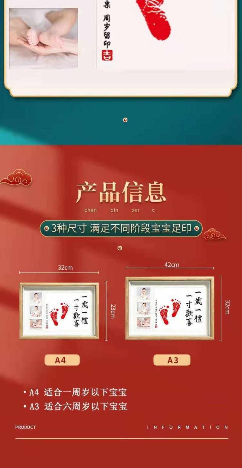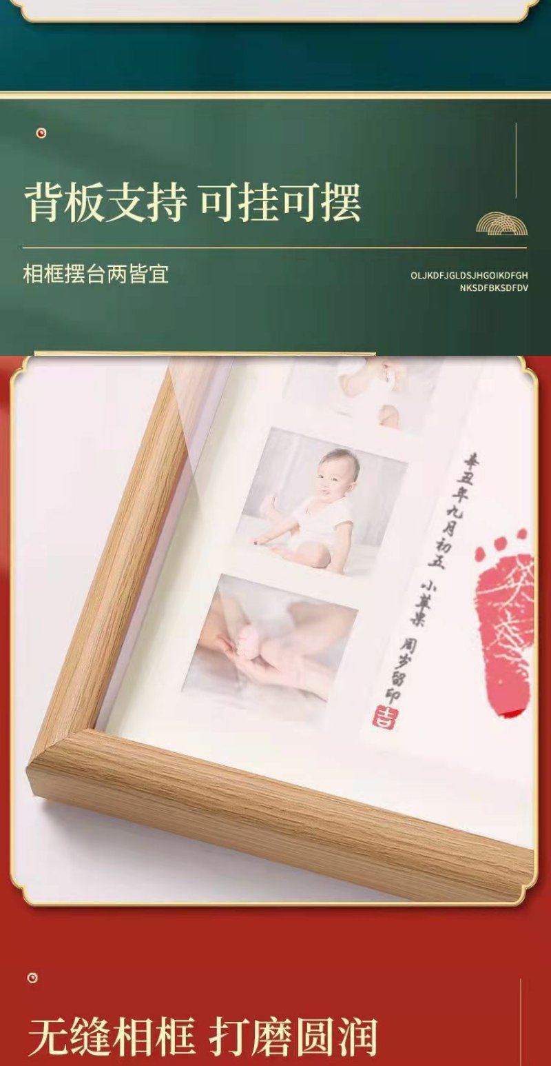 一岁一礼一寸欢喜宝宝周岁满月手脚印留念照片知足常乐相框摆台