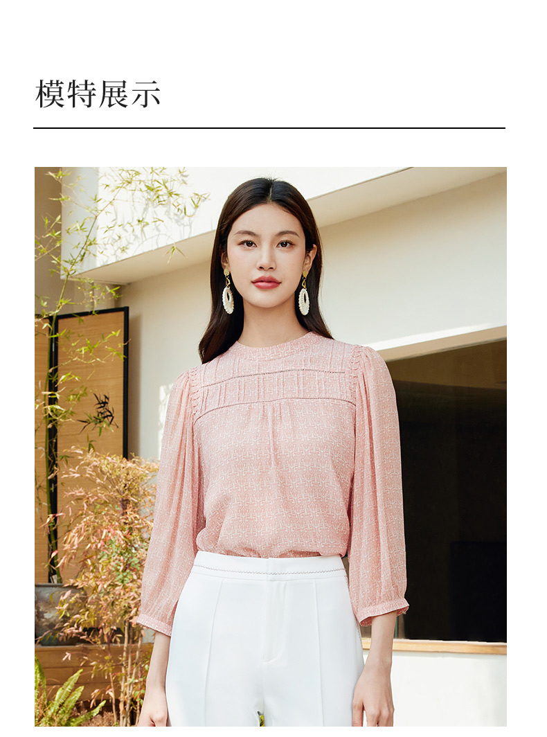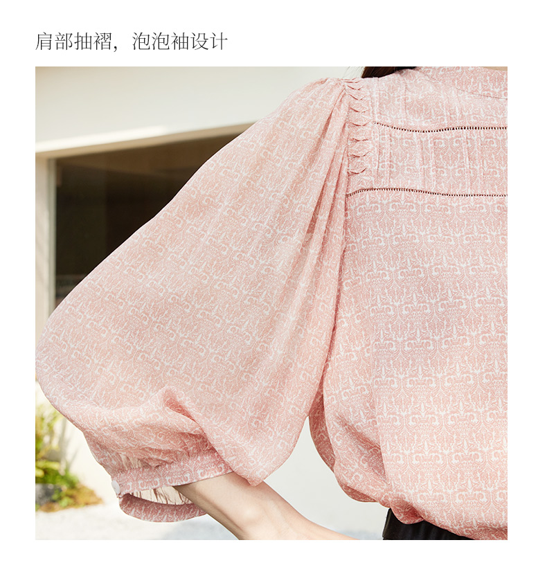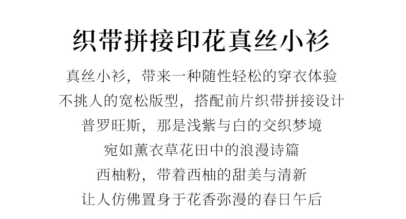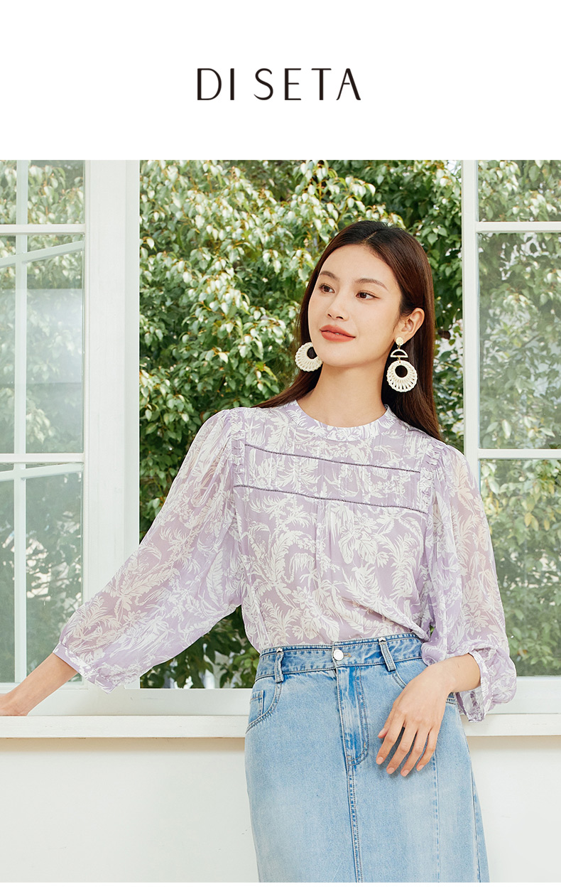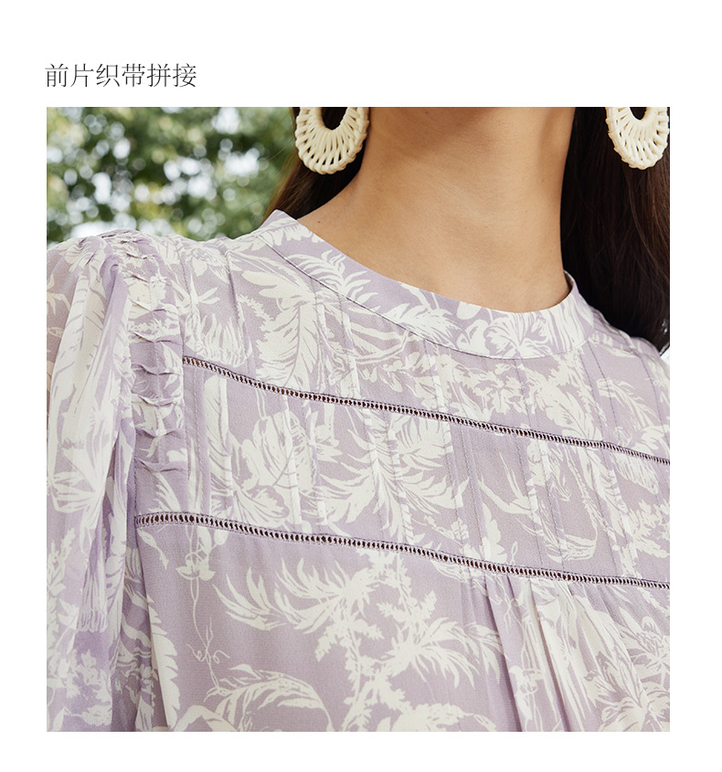玳莎法式印花真丝衬衫女2024夏季新款织带拼接设计感小众长袖上衣 EB31302