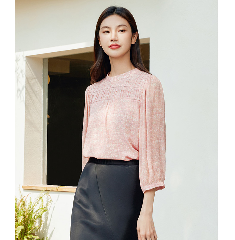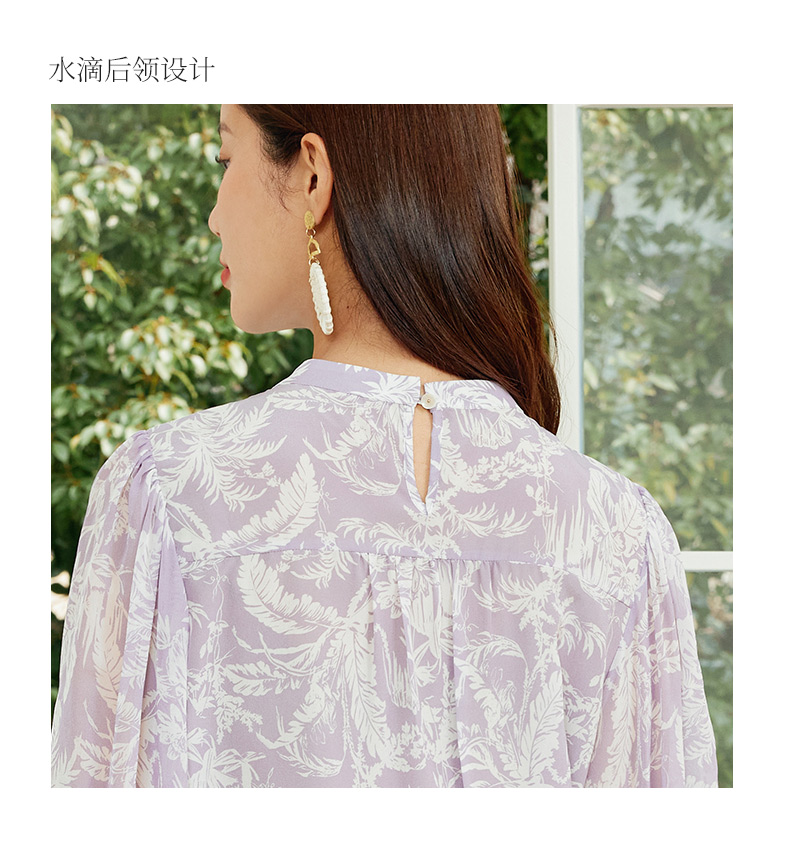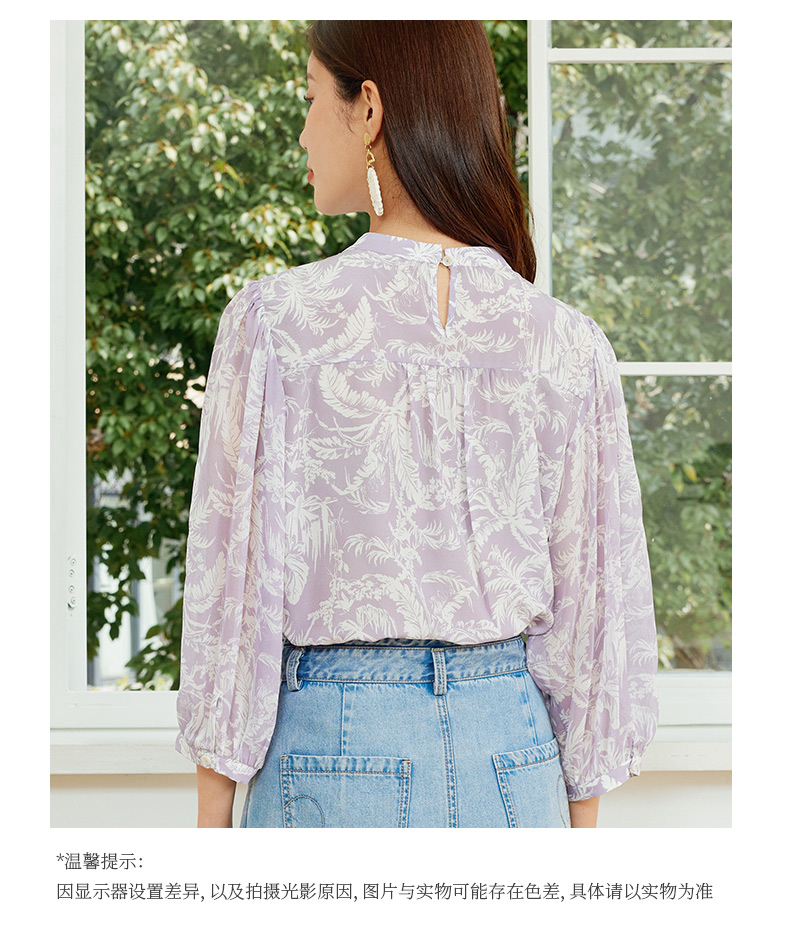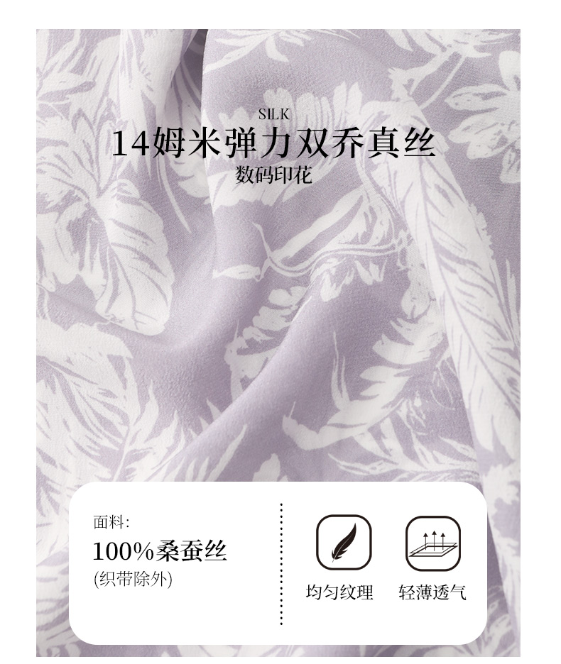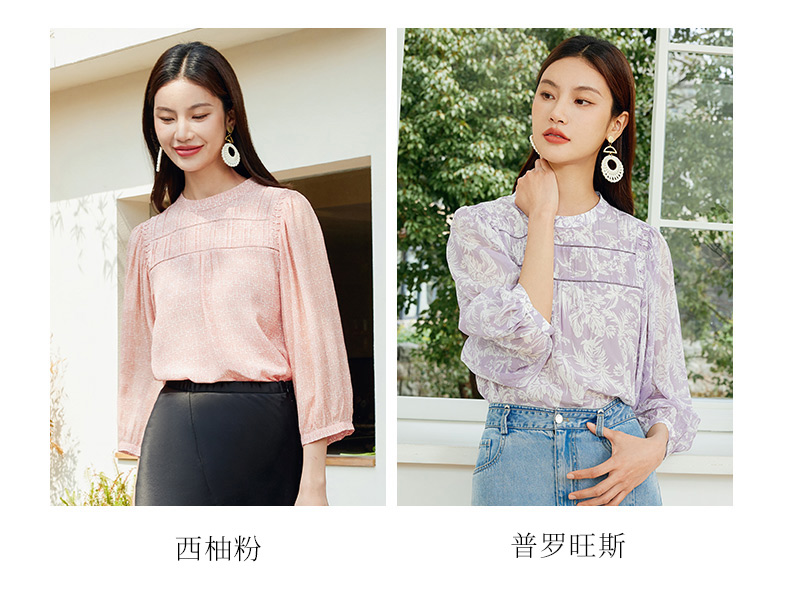 玳莎法式印花真丝衬衫女2024夏季新款织带拼接设计感小众长袖上衣 EB31302