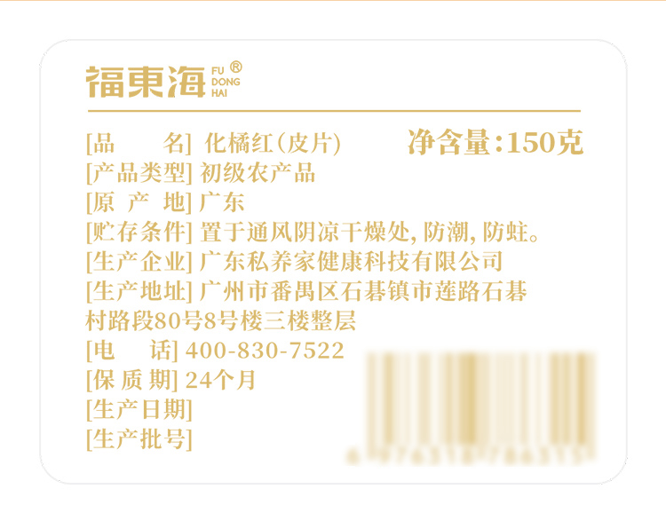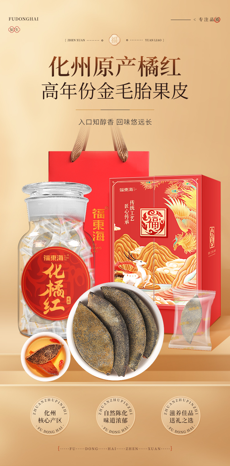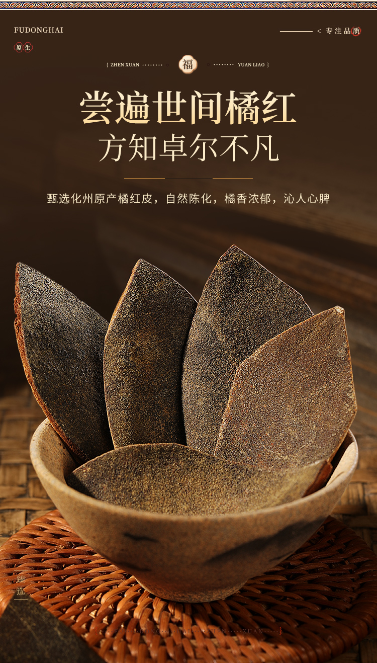 福东海 化橘红皮150克 正宗化州化橘红片陈年金毛胎果切片养生茶送长辈滋补礼盒