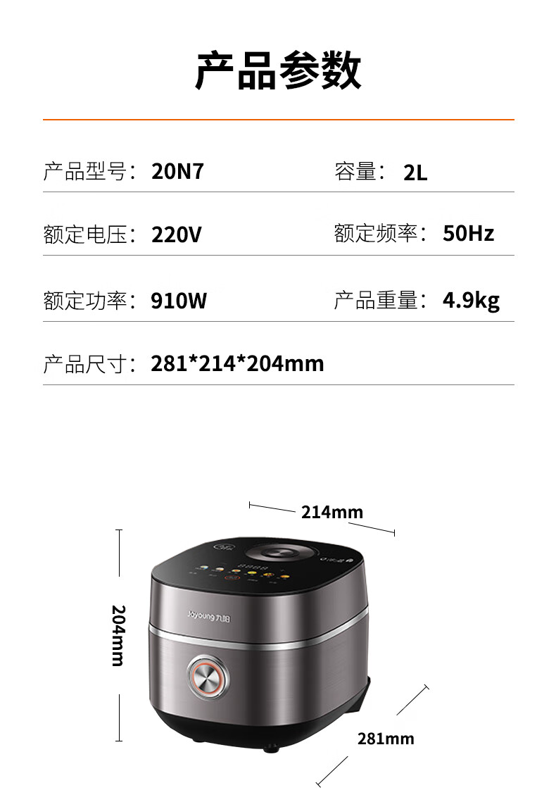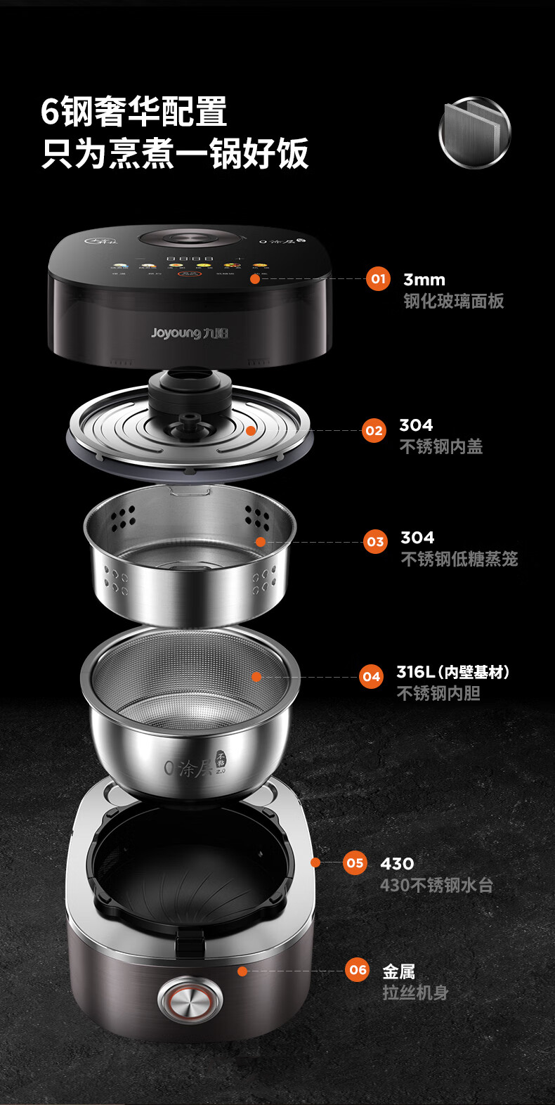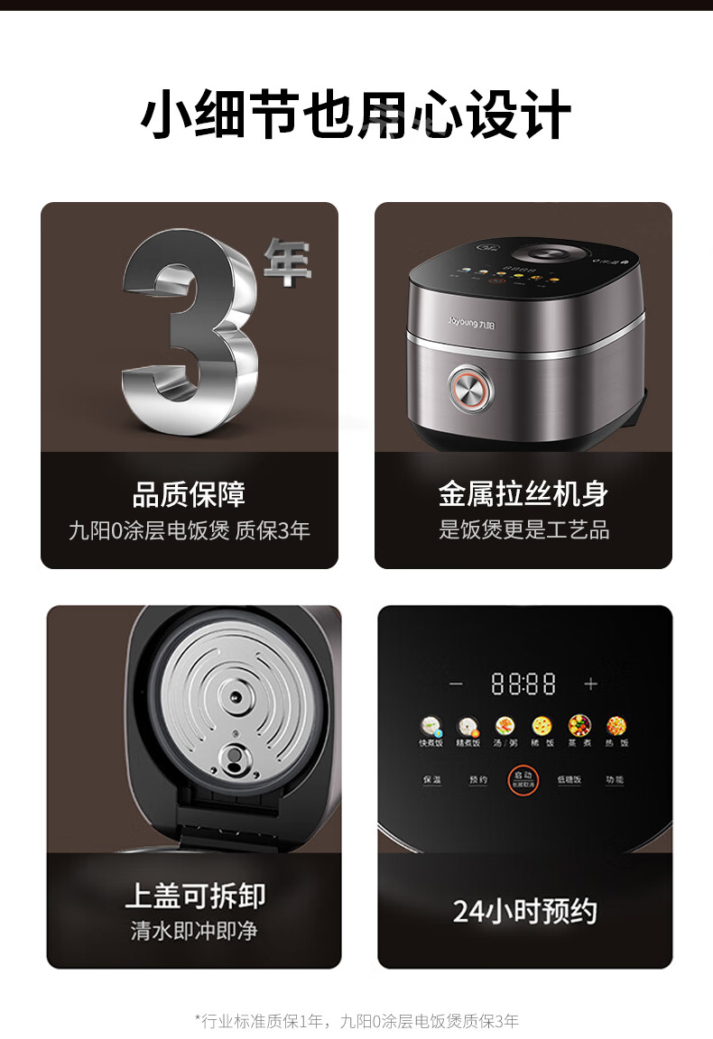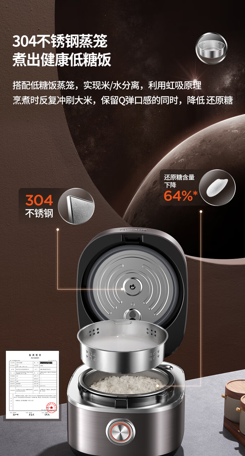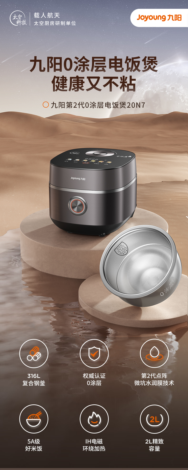 Joyoung/九阳第2代0涂层不粘太空系列316L不锈钢内胆低糖电饭煲2.0L电饭锅
