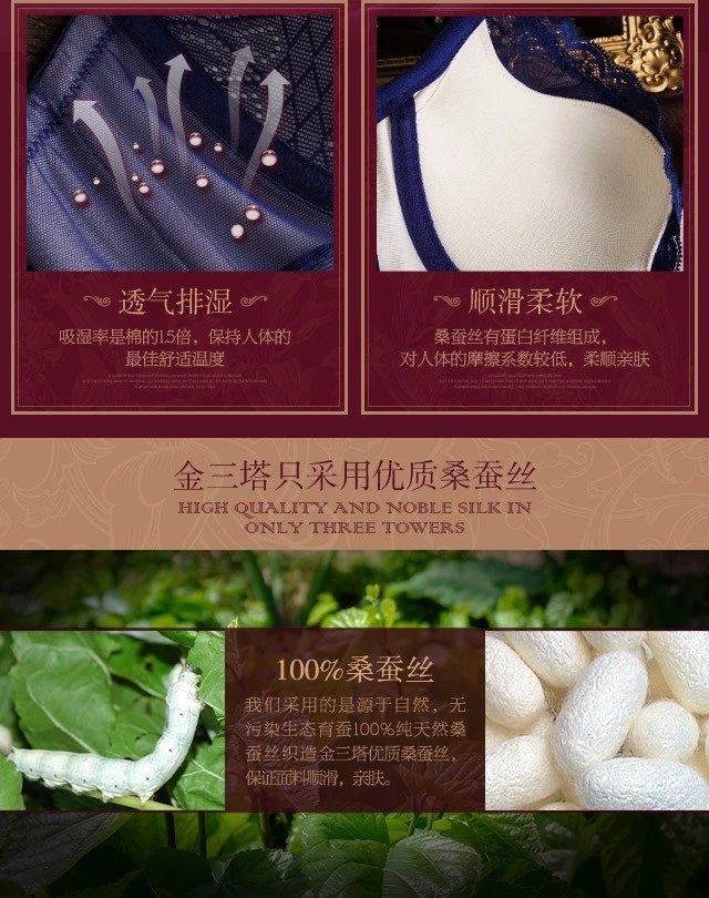 金三塔依洛丝摩登时尚系列100%桑蚕丝深V款中厚杯舒适优雅 超值NZF6A317