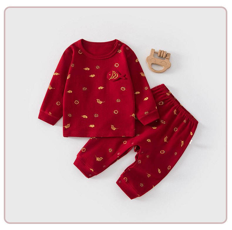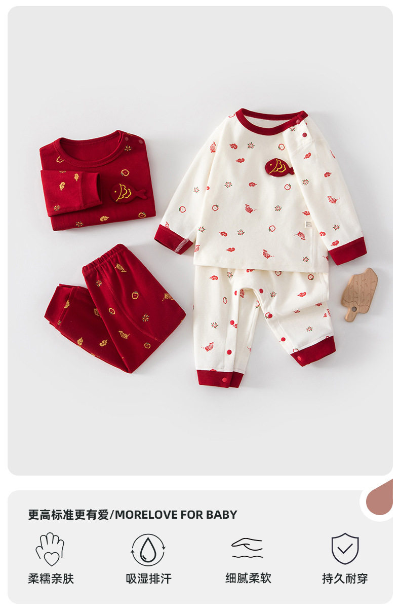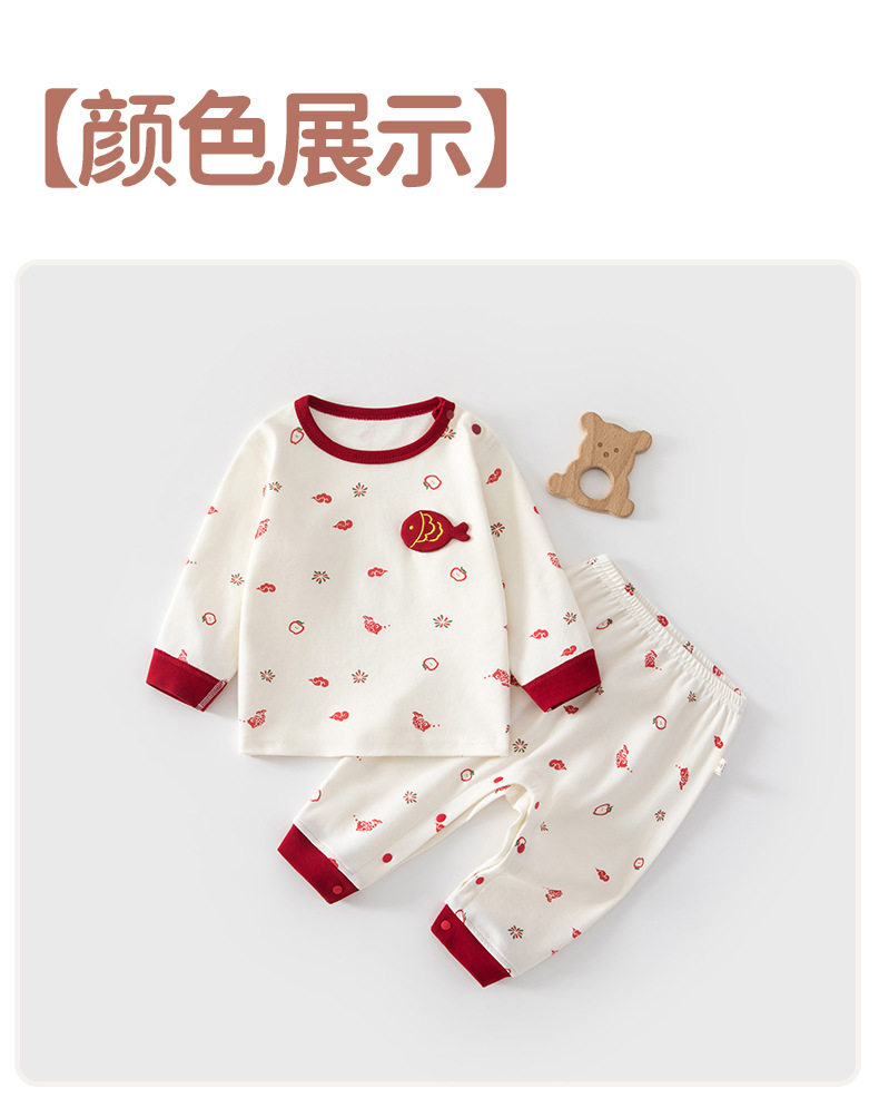 宝宝秋衣秋裤套装纯棉免脱婴儿宽松睡衣春秋衣服儿童打底内衣分体