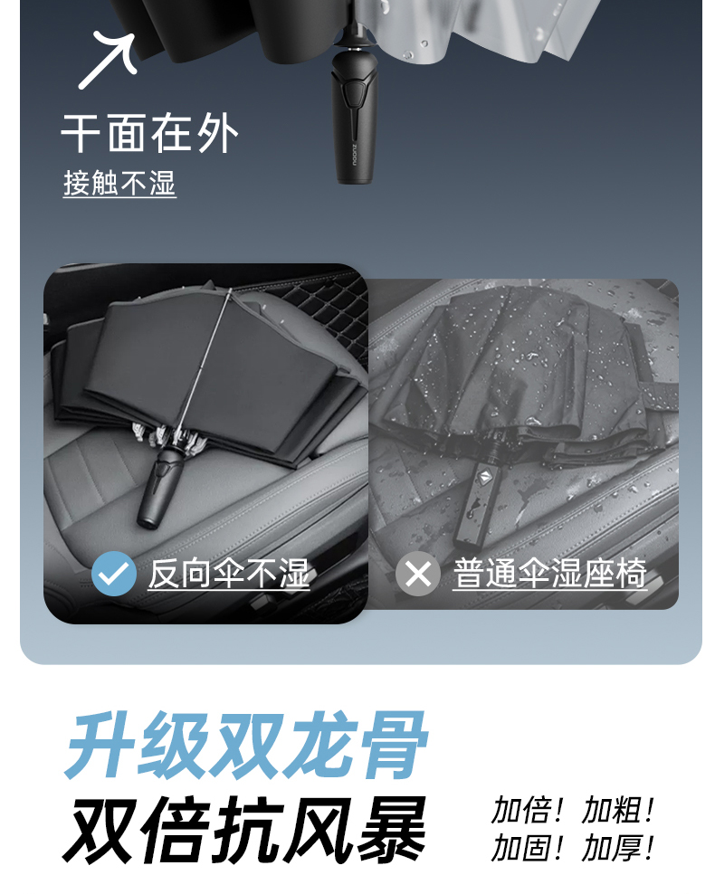 【超模君精选 反向设计 湿面不留】左都短柄全自动反向雨伞 超大伞面 进口涂层 ZD237